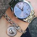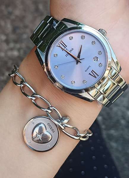 Часы Festina F16790/B — прекрасный выбор для активных и стильных девушек, которые ценят гармонию элегантности и практичности в аксессуарах. Эта модель привлекает внимание своим ярким и современным дизайном, который отлично дополнит как повседневный, так и деловой образ. Надежный кварцевый механизм обеспечивает высокую точность хода и не требует дополнительного обслуживания. Прочное минеральное стеклоМинеральное стеклоМинеральное стекло представляет собой искусственно выращенный минерал кварца. Такое стекло отличается особой устойчивостью к повреждениям и царапинам. Уступает по некоторым качествам сапфировому стеклу. защищает поверхность от появления царапин, сохраняя презентабельный внешний вид часов на долгое время, а также отличается высокой прозрачностью. Особое внимание заслуживает циферблат, выполненный по технологии Sunray — игра света на его поверхности придаёт аксессуару особое очарование, а дополняет необыкновенный вид циферблата — кристаллы. Класс водозащиты 50 метров защитит корпус от случайных брызг и капель дождя. Корпус выполнен из нержавеющей стали, а браслет с раскладной застёжкойРаскладная застёжкаТакой тип застёжки используется только на браслетах из металла. Она никогда не раскрывается полностью, происходит разделение на 2 и более частей. Раскладывающая застёжка снизит вероятность потери часов к минимуму. обеспечивает комфорт и надежность при носке. Также часы дополнены удобным календарем с окошком даты на позиции 4,5 часа.