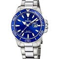 Кварцевый механизм с высокой точностью. Минеральное стеклоМинеральное стеклоМинеральное стекло представляет собой искусственно выращенный минерал кварца. Такое стекло отличается особой устойчивостью к повреждениям и царапинам. Уступает по некоторым качествам сапфировому стеклу. устойчивое к появлению царапин, обладающее высокой прозрачностью. Стрелки и метки с люминесцентным покрытиемЛюминесцентное покрытиеПозволяет считывать показания времени в темноте. Производители наносят на стрелки, часовые индексы, безель или поверхность циферблата светонакопительный состав, дающий холодное свечение.. Окошко даты с увеличительным стеклом. Класс водозащиты: 100 метров, позволит плавать, нырять и заниматься другими водными видами спорта. Поворотный безельБезельВнешний ободок, закрепляющий стекло. В спортивных часах так называется поворотное кольцо с делениями на циферблате, выполняет роль таймера – замеряет отрезки времени на шкале. Неподвижный безель – элемент декора. Однонаправленно вращающийся безель на дайверских часах позволяет фиксировать моменты погружения и выныривания на поверхность.с PVDPVDУльтратонкое покрытие наносится в технике вакуумного напыления, сочетает в себе нитрид титана особой прочности со слоем золота или оксида хрома. Несёт в себе декоративную или защитную функцию. покрытием. Корпус часов изготовлен из нержавеющей стали. Браслет с раскладной застёжкойРаскладная застёжкаТакой тип застёжки используется только на браслетах из металла. Она никогда не раскрывается полностью, происходит разделение на 2 и более частей. Раскладывающая застёжка снизит вероятность потери часов к минимуму.. Застежка с системой блокировки.