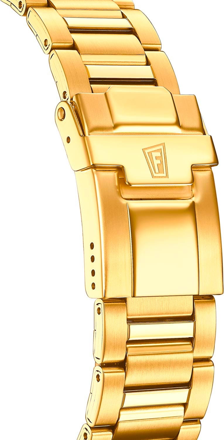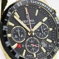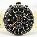 Эксклюзивный хронографХронографФункция позволяет измерять отрезки времени с особой точностью: часы, минуты, секунды. Верным признаком хронографа является наличие на циферблате 3 дополнительных окошек-счётчиков. с секундомеромСекундомерСекундоме́р — прибор, способный измерять интервалы времени с точностью до долей секунды. и тахиметромТахиметрРазмеченная шкала, располагается на ободке или безеле часов. Тахиметр позволяет рассчитать скорость на определённом участке пути, расстояние измеряется в километрах или милях., отличающийся продуманным дизайном и отделкой, придется по вкусу мужчинам, ценящим идеальное соотношение цены и качества. Минеральное стеклоМинеральное стеклоМинеральное стекло представляет собой искусственно выращенный минерал кварца. Такое стекло отличается особой устойчивостью к повреждениям и царапинам. Уступает по некоторым качествам сапфировому стеклу. устойчивое к появлению царапин, обладающее высокой прозрачностью. Циферблат с люминесцентным покрытиемЛюминесцентное покрытиеПозволяет считывать показания времени в темноте. Производители наносят на стрелки, часовые индексы, безель или поверхность циферблата светонакопительный состав, дающий холодное свечение. стрелок и меток. Корпус и браслет из стали с PVDPVDУльтратонкое покрытие наносится в технике вакуумного напыления, сочетает в себе нитрид титана особой прочности со слоем золота или оксида хрома. Несёт в себе декоративную или защитную функцию. покрытием. Класс водозащиты: 100 метров, позволит защитить корпус от случайных брызг или капель дождя. Браслет с раскладной застёжкойРаскладная застёжкаТакой тип застёжки используется только на браслетах из металла. Она никогда не раскрывается полностью, происходит разделение на 2 и более частей. Раскладывающая застёжка снизит вероятность потери часов к минимуму..