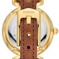 Женские американские часы  с минеральным стекломМинеральное стеклоМинеральное стекло представляет собой искусственно выращенный минерал кварца. Такое стекло отличается особой устойчивостью к повреждениям и царапинам. Уступает по некоторым качествам сапфировому стеклу. Fossil ES5297, кварцевый механизм с высокой точностью. Корпус часов изготовлен из нержавеющей стали. Стрелки с люминесцентным покрытиемЛюминесцентное покрытиеПозволяет считывать показания времени в темноте. Производители наносят на стрелки, часовые индексы, безель или поверхность циферблата светонакопительный состав, дающий холодное свечение.. Рифленая заводная головка с защитой. Класс водозащиты: 50 метров, позволит плавать, нырять и заниматься другими водными видами спорта. Кожаный ремешок на стандартной застежке.