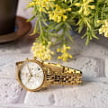 Fossil ES5358 – это изысканные женские часы-хронографХронографФункция позволяет измерять отрезки времени с особой точностью: часы, минуты, секунды. Верным признаком хронографа является наличие на циферблате 3 дополнительных окошек-счётчиков. с секундомеромСекундомерСекундоме́р — прибор, способный измерять интервалы времени с точностью до долей секунды., которые станут идеальным дополнением к вашему стилю, предлагая баланс между функциональностью и эстетикой. Эти часы изготовлены в США и оснащены надежным кварцевым механизмом, что обеспечивает точность и долговечность. Корпус часов выполнен из прочной стали с золотистым IP-покрытиемIP-покрытиеМетод ионного напыления. Демонстрирует повышенную устойчивость к истиранию, окислению и химическим веществам. Под воздействием высокого давления и температуры около 1500°C молекулы металла надёжно соединяются с частицами корпуса часов., а безельБезельВнешний ободок, закрепляющий стекло. В спортивных часах так называется поворотное кольцо с делениями на циферблате, выполняет роль таймера – замеряет отрезки времени на шкале. Неподвижный безель – элемент декора. Однонаправленно вращающийся безель на дайверских часах позволяет фиксировать моменты погружения и выныривания на поверхность. дополнен кристаллами, добавляя блеска и шарма. Белый перламутровый циферблат гармонично сочетается с маркировкой в виде штрихов и римскими цифрами VI и XII, придавая часам классический вид. Окошко даты, расположенное между отметками 4 и 5 часов, добавляет удобства в повседневном использовании. Часы обладают водозащитой 50WR, что позволяет не беспокоиться о случайных попаданиях влаги. Минеральное стеклоМинеральное стеклоМинеральное стекло представляет собой искусственно выращенный минерал кварца. Такое стекло отличается особой устойчивостью к повреждениям и царапинам. Уступает по некоторым качествам сапфировому стеклу. защищает циферблат от царапин и повреждений. Стрелки с люминесцентным покрытиемЛюминесцентное покрытиеПозволяет считывать показания времени в темноте. Производители наносят на стрелки, часовые индексы, безель или поверхность циферблата светонакопительный состав, дающий холодное свечение. позволяют легко считывать время даже в условиях низкой освещенности. Стальной браслет с золотистым IP-покрытиемIP-покрытиеМетод ионного напыления. Демонстрирует повышенную устойчивость к истиранию, окислению и химическим веществам. Под воздействием высокого давления и температуры около 1500°C молекулы металла надёжно соединяются с частицами корпуса часов. и раскладной застёжкойРаскладная застёжкаТакой тип застёжки используется только на браслетах из металла. Она никогда не раскрывается полностью, происходит разделение на 2 и более частей. Раскладывающая застёжка снизит вероятность потери часов к минимуму. обеспечивает комфортное ношение и надежную фиксацию на запястье, с габаритными размерами 36 мм в диаметре, шириной браслета 16 мм и длиной 175 мм. Эти часы — прекрасный выбор для тех, кто ценит стиль и качество в каждом элементе аксессуара.
