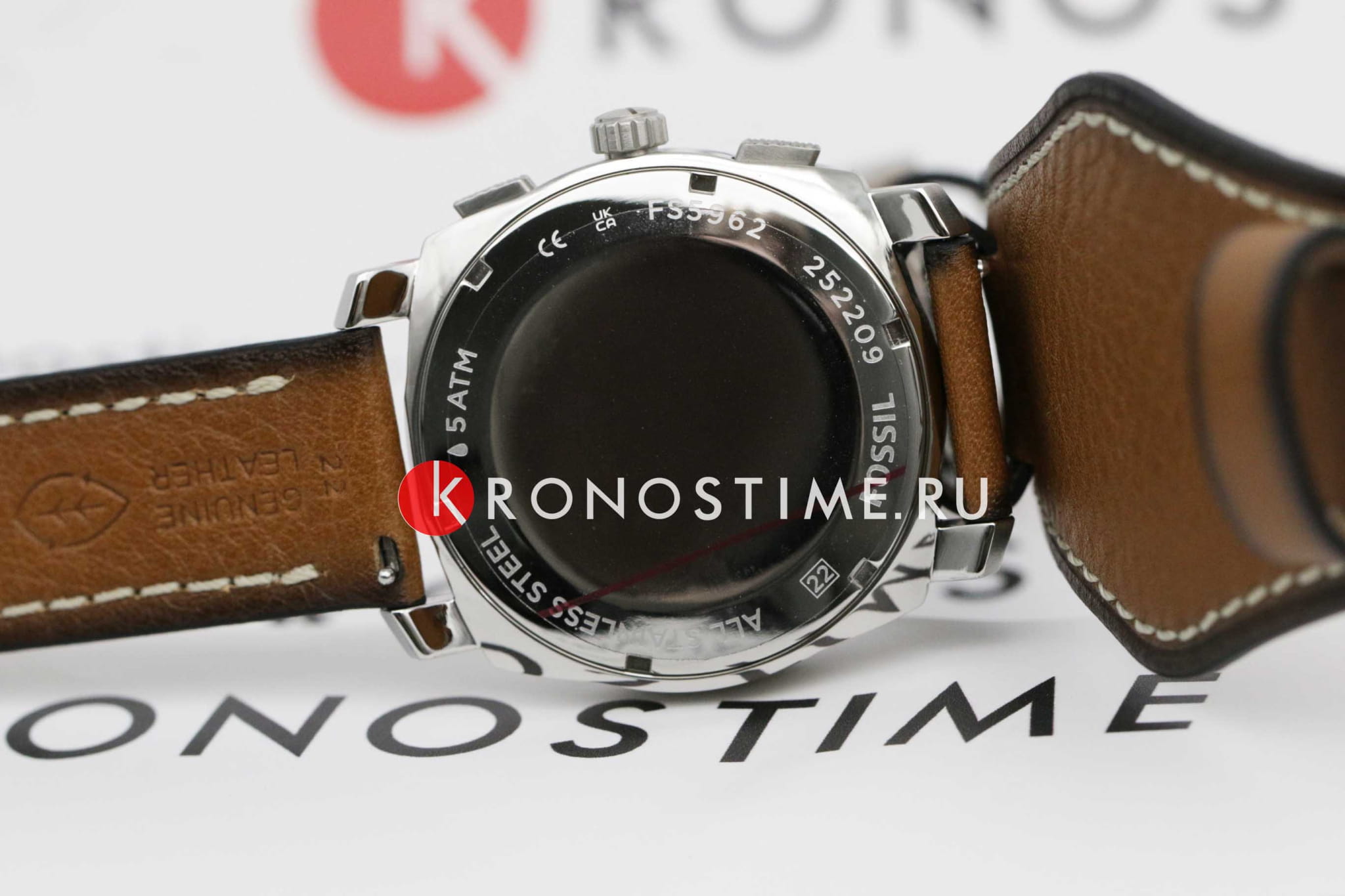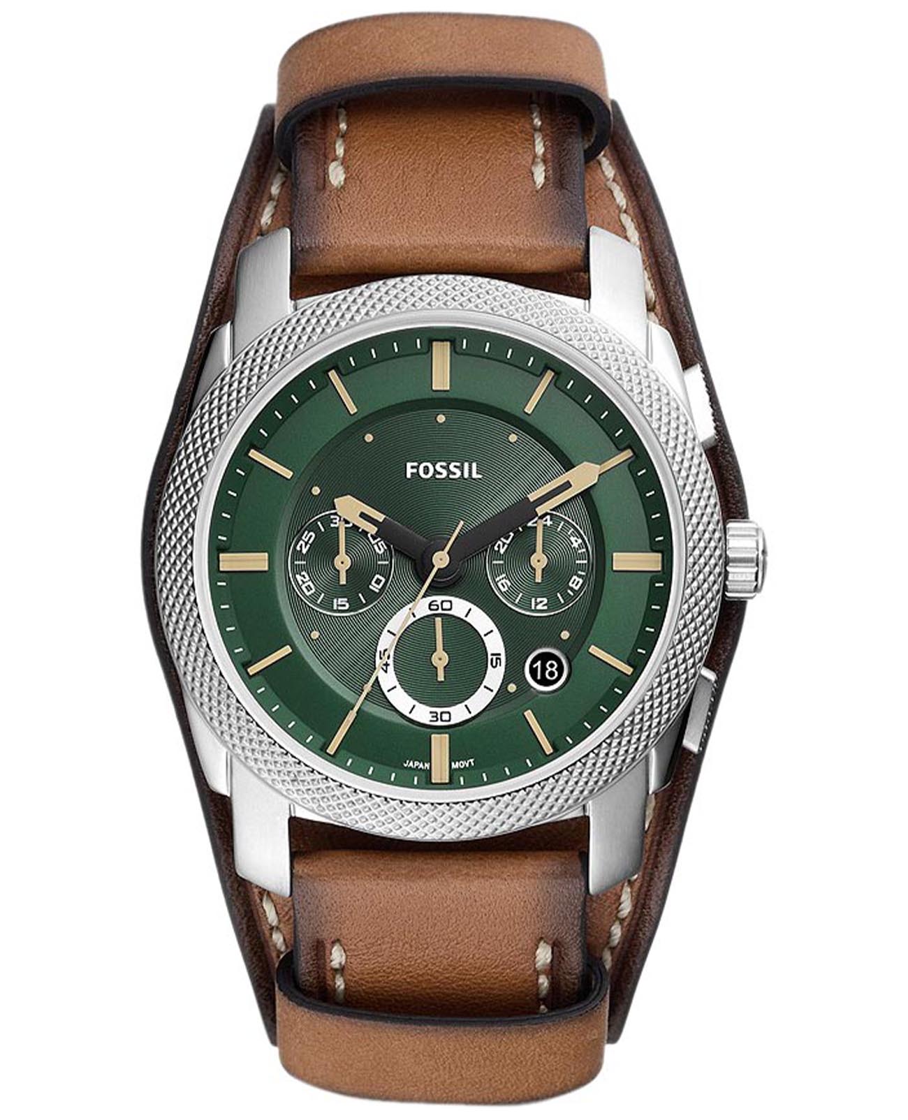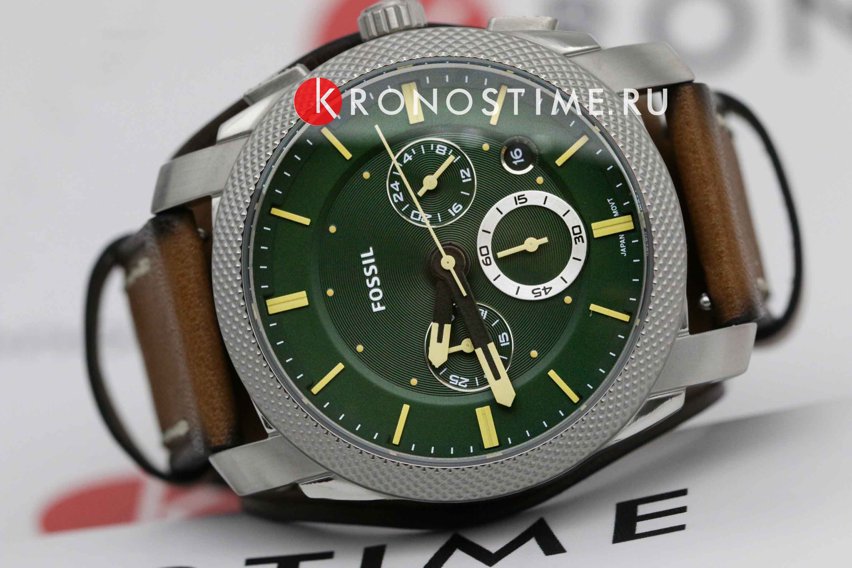 Мужские американские часы-хронографХронографФункция позволяет измерять отрезки времени с особой точностью: часы, минуты, секунды. Верным признаком хронографа является наличие на циферблате 3 дополнительных окошек-счётчиков. с секундомеромСекундомерСекундоме́р — прибор, способный измерять интервалы времени с точностью до долей секунды. Fossil Machine FS5962, кварцевый механизм с высокой точностью. Класс водозащиты: 50 метров, позволит защитить корпус от случайных брызг или капель дождя. Корпус часов изготовлен из стали. Метки в виде штрихов. Окошко даты находится между часовыми отметками 4 и 5. Рифленая заводная головка. Ремешок из эко-кожи с классической застежкой. Рифленая заводная головка и безельБезельВнешний ободок, закрепляющий стекло. В спортивных часах так называется поворотное кольцо с делениями на циферблате, выполняет роль таймера – замеряет отрезки времени на шкале. Неподвижный безель – элемент декора. Однонаправленно вращающийся безель на дайверских часах позволяет фиксировать моменты погружения и выныривания на поверхность..