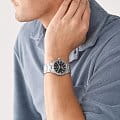 Мужские наручные часы Fossil Defender FS5973 с солнечной батарейкой. Корпус и браслет часов изготовлены из нержавеющей стали. Минеральное стеклоМинеральное стеклоМинеральное стекло представляет собой искусственно выращенный минерал кварца. Такое стекло отличается особой устойчивостью к повреждениям и царапинам. Уступает по некоторым качествам сапфировому стеклу. устойчивое к мелким механическим повреждениям. Стальной браслет на раскладной застёжкеРаскладная застёжкаТакой тип застёжки используется только на браслетах из металла. Она никогда не раскрывается полностью, происходит разделение на 2 и более частей. Раскладывающая застёжка снизит вероятность потери часов к минимуму.. Класс водозащиты: 100 метров, позволит плавать, нырять и заниматься другими водными видами спорта. Окошко даты находится в положении 3 часа. Стрелки и метки с люминесцентным покрытиемЛюминесцентное покрытиеПозволяет считывать показания времени в темноте. Производители наносят на стрелки, часовые индексы, безель или поверхность циферблата светонакопительный состав, дающий холодное свечение..