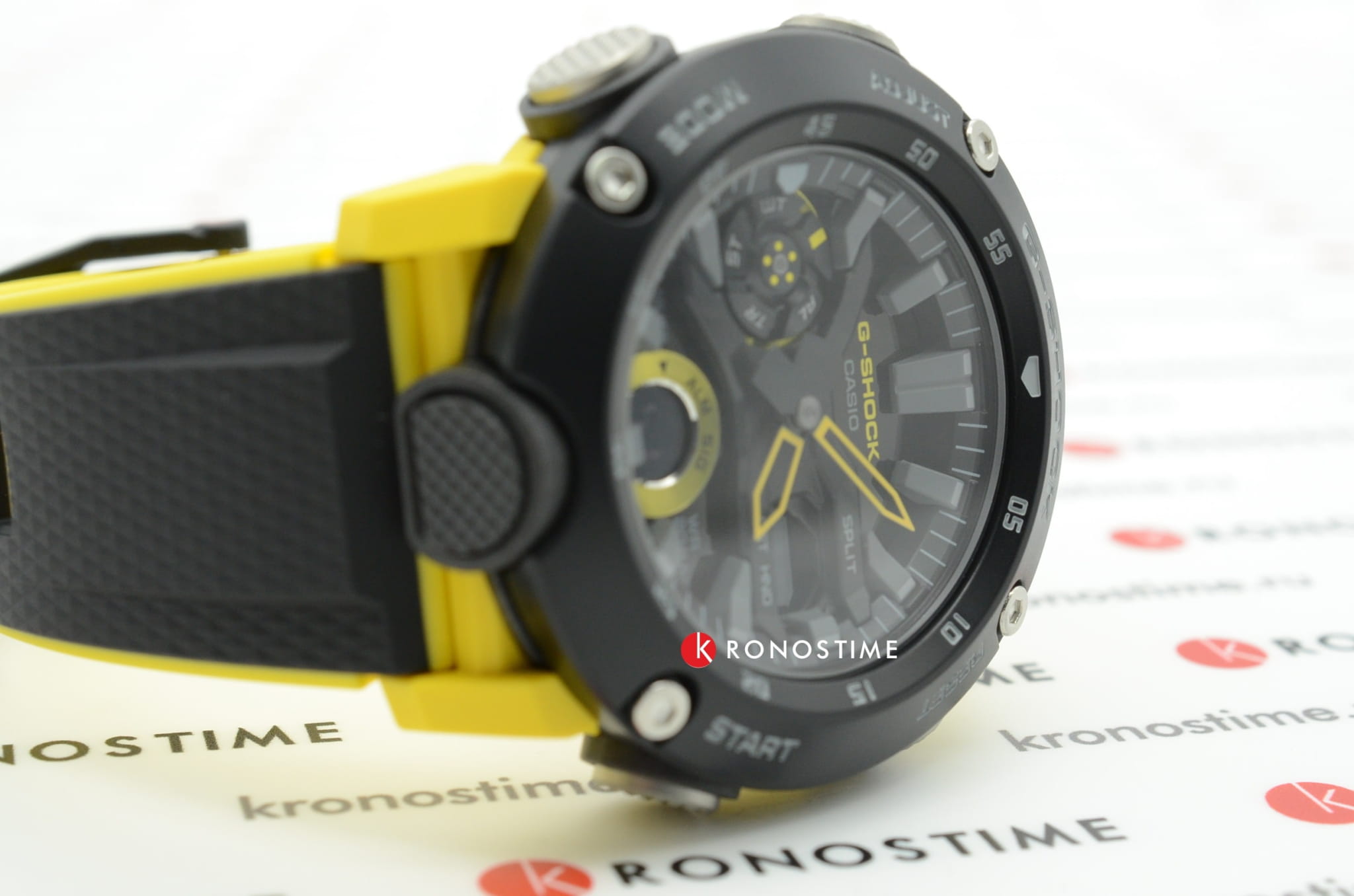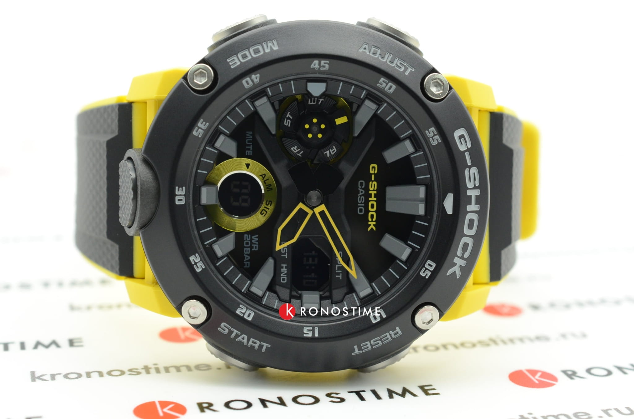 Наручные часы в чёрно-желтом исполнении реализуют технологию Carbon Core GuardCarbon Core Guard Новейшая структура корпуса, разработанная Casio. Полиуретановая пластина дополнительно усилена карбоновыми вставками, что придаёт специальную защиту от механических повреждений. Карбон отличается лёгкостью и прочностью., карбон послужил материалом для изготовления противоударного корпусаУдаропрочный корпусМеханизм заключён в корпус, выполненный из современных материалов, устойчивых к ударам, механическим повреждениям и падению с высоты: инновационный пластик, карбон, нержавеющая сталь, титан.. Это позволило добиться повышенной устойчивости к ударам и падению без утяжеления общей конструкции. БезельБезельВнешний ободок, закрепляющий стекло. В спортивных часах так называется поворотное кольцо с делениями на циферблате, выполняет роль таймера – замеряет отрезки времени на шкале. Неподвижный безель – элемент декора. Однонаправленно вращающийся безель на дайверских часах позволяет фиксировать моменты погружения и выныривания на поверхность. оставлен полимерным. Японский кварцевый механизм работает за счёт батарейки, срок службы которой - 3 года. Закаленное минеральное стекло. Двойная задняя крышка, стальная и пластиковая. Светодиодная подсветкаСветодиодная подсветкаСветодиодная или LED-подсветка обеспечивает появление яркого холодного свечения за счёт LED-элементов - маленьких лампочек. Они потребляют минимальное количество энергии, чаще всего можно встретить 1 светодиод, в нижней части циферблата.. Водонепроницаемость 200 метров. Возможность быстрой и лёгкой замены полимерного ремешка. ХронографХронографФункция позволяет измерять отрезки времени с особой точностью: часы, минуты, секунды. Верным признаком хронографа является наличие на циферблате 3 дополнительных окошек-счётчиков., автоматический календарь, мировое времяМировое время Полезное часовое усложнение, отображающее время в основных городах и известных областях по всему миру, оно связано с часовыми поясами, удобно для путешественников и бизнесменов. , будильник, секундомер, таймер с автоповтором. Габариты: 48,7 x 51,2 x 14,1 мм.