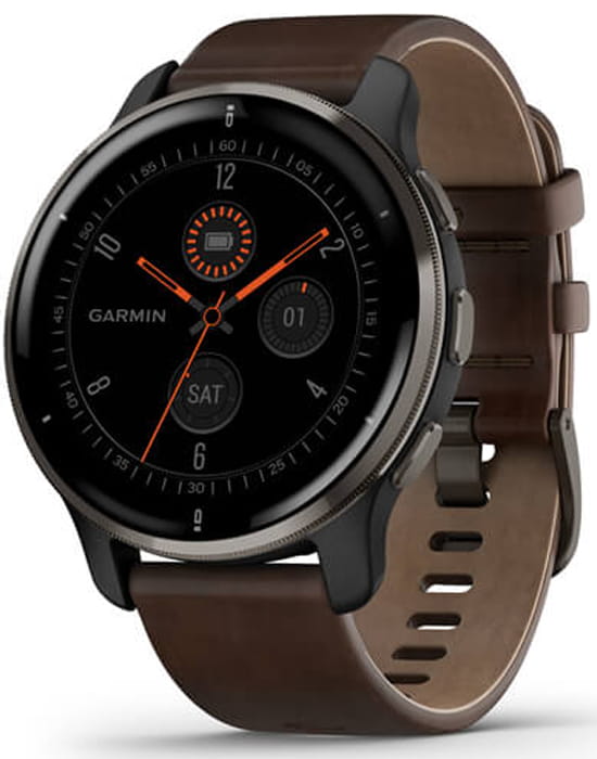 Умные многофункциональные мужские часы Garmin Venu 2 Plus 010-02496-15, электронный механизм с высокой точностью. Класс водозащиты: 50 метров, позволит защитить корпус от случайных брызг или капель дождя. Материал корпуса: пластик. Циферблат с минеральным стекломМинеральное стеклоМинеральное стекло представляет собой искусственно выращенный минерал кварца. Такое стекло отличается особой устойчивостью к повреждениям и царапинам. Уступает по некоторым качествам сапфировому стеклу.. Экран с светодиодной подсветкойСветодиодная подсветкаСветодиодная или LED-подсветка обеспечивает появление яркого холодного свечения за счёт LED-элементов - маленьких лампочек. Они потребляют минимальное количество энергии, чаще всего можно встретить 1 светодиод, в нижней части циферблата..БезельБезельВнешний ободок, закрепляющий стекло. В спортивных часах так называется поворотное кольцо с делениями на циферблате, выполняет роль таймера – замеряет отрезки времени на шкале. Неподвижный безель – элемент декора. Однонаправленно вращающийся безель на дайверских часах позволяет фиксировать моменты погружения и выныривания на поверхность. из нержавеющей стали.