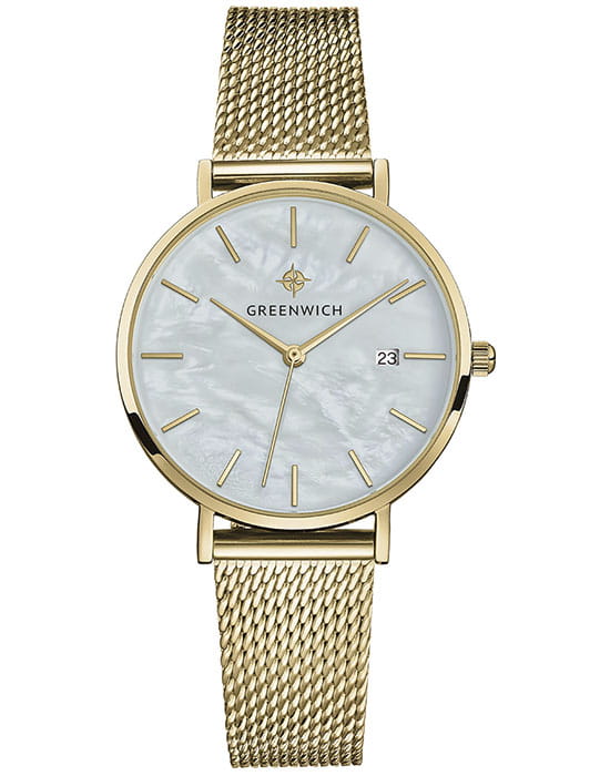 Женские наручные часы Greenwich GW 301.20.53 помогут дополнить образ элегантной особы, модель в лаконичном исполнении подойдёт для повседневной носки. Классический стиль перекликается с дизайнерскими решениями, позволяя экспериментировать с одеждой. Минималистичный циферблат украшен эмблемой в виде Розы Ветров, являющейся символом удачи и поддержки во всех начинаниях. Часы имеют прочный корпус из стали 316L, характеризующейся устойчивостью к коррозии. Высокая точность хода обеспечивается за счёт работы японского механизма. Минеральное стекло препятствует появлению царапин.