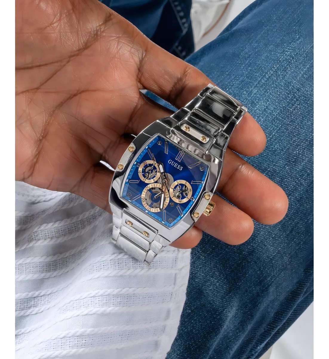 Мужские наручные часы Guess Trend GW0456G5 – это сочетание элегантности и современного стиля. Они оснащены надежным кварцевым механизмом, который обеспечивает точность хода. Корпус часов выполнен из нержавеющей стали диаметром 41,5 мм и толщиной 10,45 мм, придающими модели особый характер. Циферблат оснащен метками в виде штрихов. Часы поддерживают 12-ти и 24-х часовой формат времени, а также оснащены календарем на отдельном циферблате. Люминесцентное покрытиеЛюминесцентное покрытиеПозволяет считывать показания времени в темноте. Производители наносят на стрелки, часовые индексы, безель или поверхность циферблата светонакопительный состав, дающий холодное свечение. на стрелках и метках обеспечивает отличную видимость в темноте. Стальной браслет с раскладной застежкойРаскладная застёжкаТакой тип застёжки используется только на браслетах из металла. Она никогда не раскрывается полностью, происходит разделение на 2 и более частей. Раскладывающая застёжка снизит вероятность потери часов к минимуму. гарантирует комфортное ношение и надежную фиксацию. Минеральное стеклоМинеральное стеклоМинеральное стекло представляет собой искусственно выращенный минерал кварца. Такое стекло отличается особой устойчивостью к повреждениям и царапинам. Уступает по некоторым качествам сапфировому стеклу. защищает циферблат от царапин, а водозащита 50WR предохраняет часы от случайных брызг и дождя. Эта модель станет отличным выбором для тех, кто ценит стиль и функциональность в одном аксессуаре.