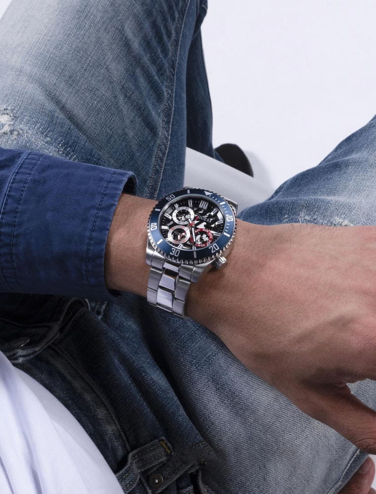 Кварцевый механизм с высокой точностью. Минеральное стеклоМинеральное стеклоМинеральное стекло представляет собой искусственно выращенный минерал кварца. Такое стекло отличается особой устойчивостью к повреждениям и царапинам. Уступает по некоторым качествам сапфировому стеклу. устойчивое к появлению царапин, обладающее высокой прозрачностью. Стрелки с люминесцентным покрытиемЛюминесцентное покрытиеПозволяет считывать показания времени в темноте. Производители наносят на стрелки, часовые индексы, безель или поверхность циферблата светонакопительный состав, дающий холодное свечение.. Класс водозащиты: 50 метров, позволит защитить корпус от случайных брызг или капель дождя. Корпус часов изготовлен из нержавеющей стали. Браслет с раскладной застёжкойРаскладная застёжкаТакой тип застёжки используется только на браслетах из металла. Она никогда не раскрывается полностью, происходит разделение на 2 и более частей. Раскладывающая застёжка снизит вероятность потери часов к минимуму..