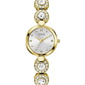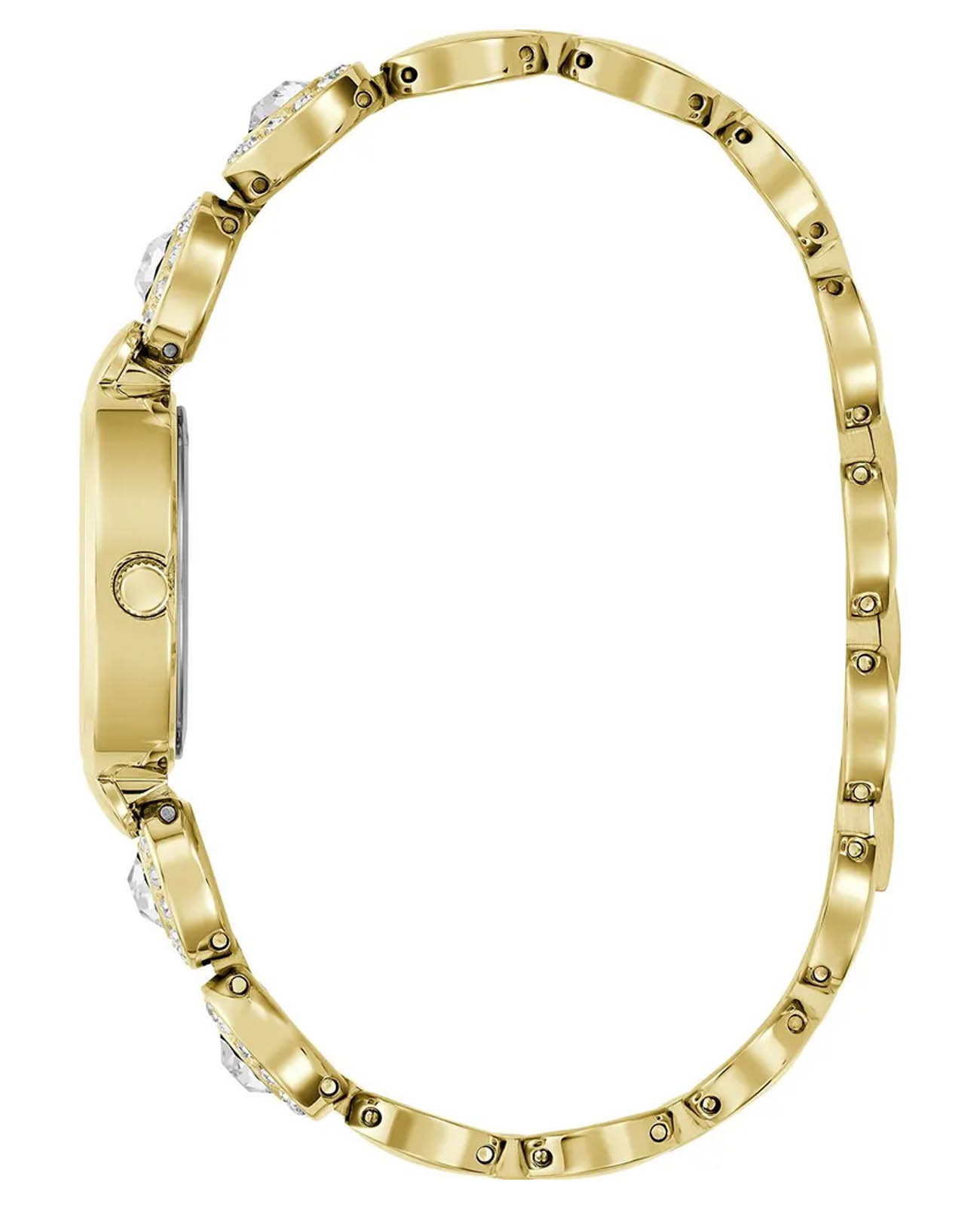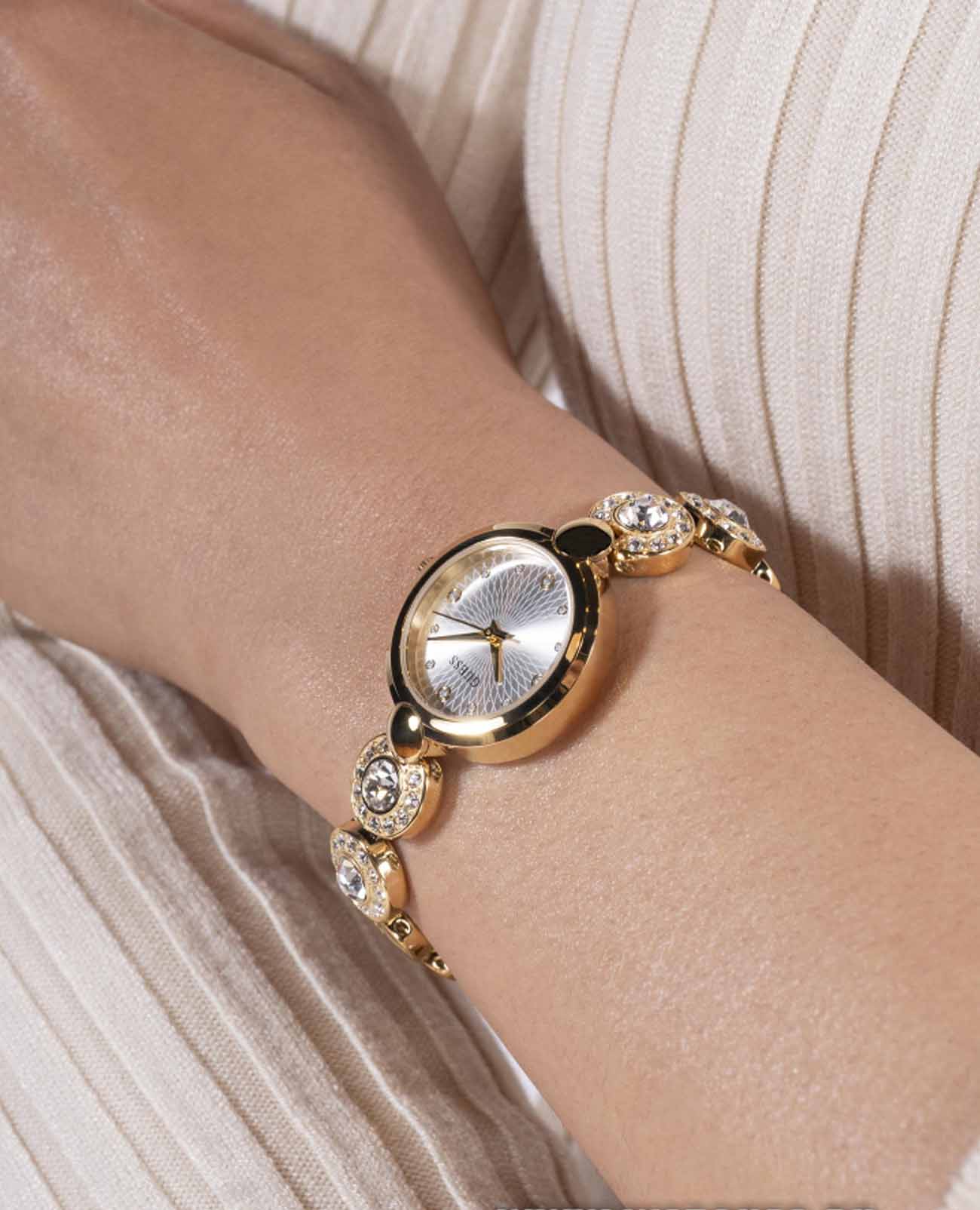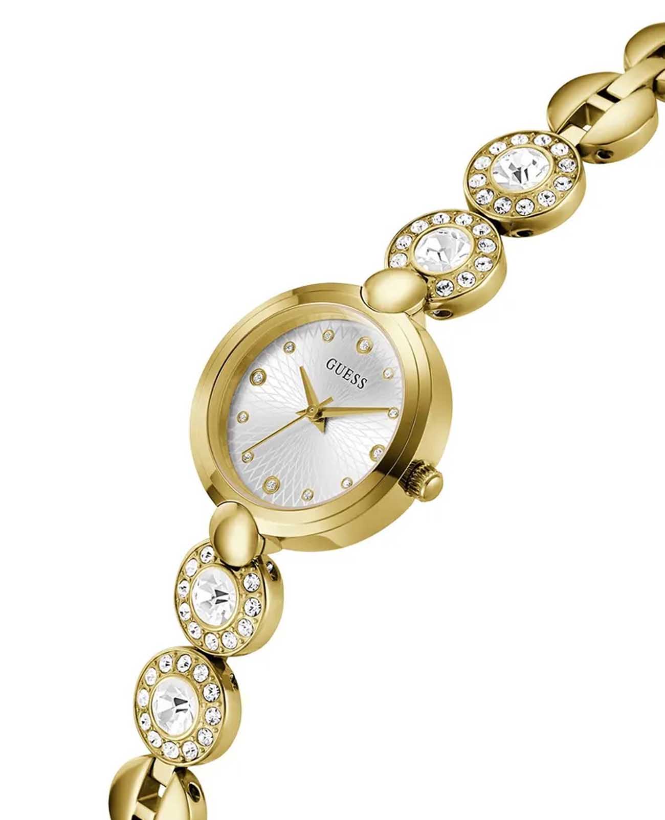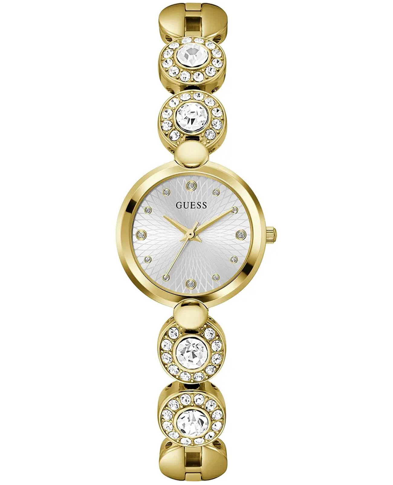 Женские наручные часы с минеральным стекломМинеральное стеклоМинеральное стекло представляет собой искусственно выращенный минерал кварца. Такое стекло отличается особой устойчивостью к повреждениям и царапинам. Уступает по некоторым качествам сапфировому стеклу. Guess Trend GW0757L2, кварцевый механизм с высокой точностью. Корпус часов изготовлен из стали с IP-покрытиемIP-покрытиеМетод ионного напыления. Демонстрирует повышенную устойчивость к истиранию, окислению и химическим веществам. Под воздействием высокого давления и температуры около 1500°C молекулы металла надёжно соединяются с частицами корпуса часов.. Циферблат и браслет частично украшены кристаллами. Класс водозащиты: 30 метров, позволит защитить корпус от случайных брызг или капель дождя. Стальной браслет с IP-покрытиемIP-покрытиеМетод ионного напыления. Демонстрирует повышенную устойчивость к истиранию, окислению и химическим веществам. Под воздействием высокого давления и температуры около 1500°C молекулы металла надёжно соединяются с частицами корпуса часов. на ювелирной застежке.