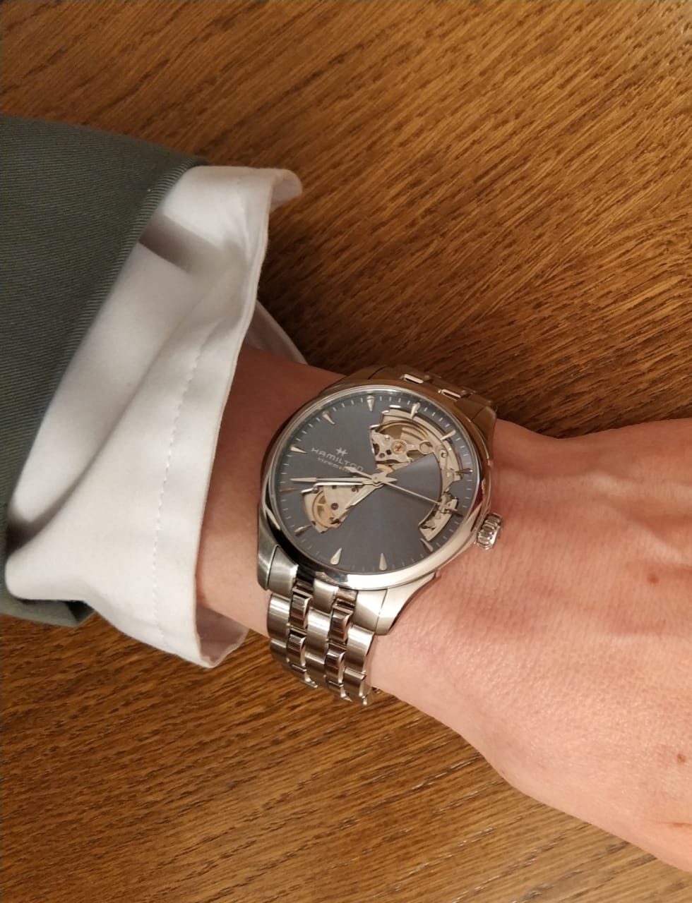 Женские механические швейцарские часы Hamilton Jazzmaster Open Heart Auto H32215140, автоматический механизм с высокой точностью. Сапфировое стеклоСапфировое стеклоПрочный и надёжный материал из кристалла сапфира синтетического происхождения, характеризующийся особой твёрдостью и устойчивостью к царапинам и повреждениям. устойчивое к появлению царапин, обладающее высокой прозрачностью. Класс водозащиты: 50 метров, позволит защитить корпус от случайных брызг или капель дождя. Корпус часов изготовлен из нержавеющей стали.