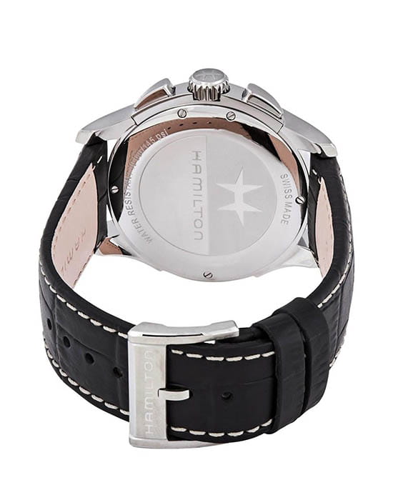 Мужские швейцарские часы-хронографХронографФункция позволяет измерять отрезки времени с особой точностью: часы, минуты, секунды. Верным признаком хронографа является наличие на циферблате 3 дополнительных окошек-счётчиков. Hamilton Jazzmaster Chrono Quartz H32612741. Кварцевый механизм с высокой точностью. Сапфировое стеклоСапфировое стеклоПрочный и надёжный материал из кристалла сапфира синтетического происхождения, характеризующийся особой твёрдостью и устойчивостью к царапинам и повреждениям. устойчивое к появлению царапин, обладающее высокой прозрачностью. Класс водозащиты: 100 метров, позволит плавать, нырять и заниматься другими водными видами спорта. Корпус часов изготовлен из стали, цвета.