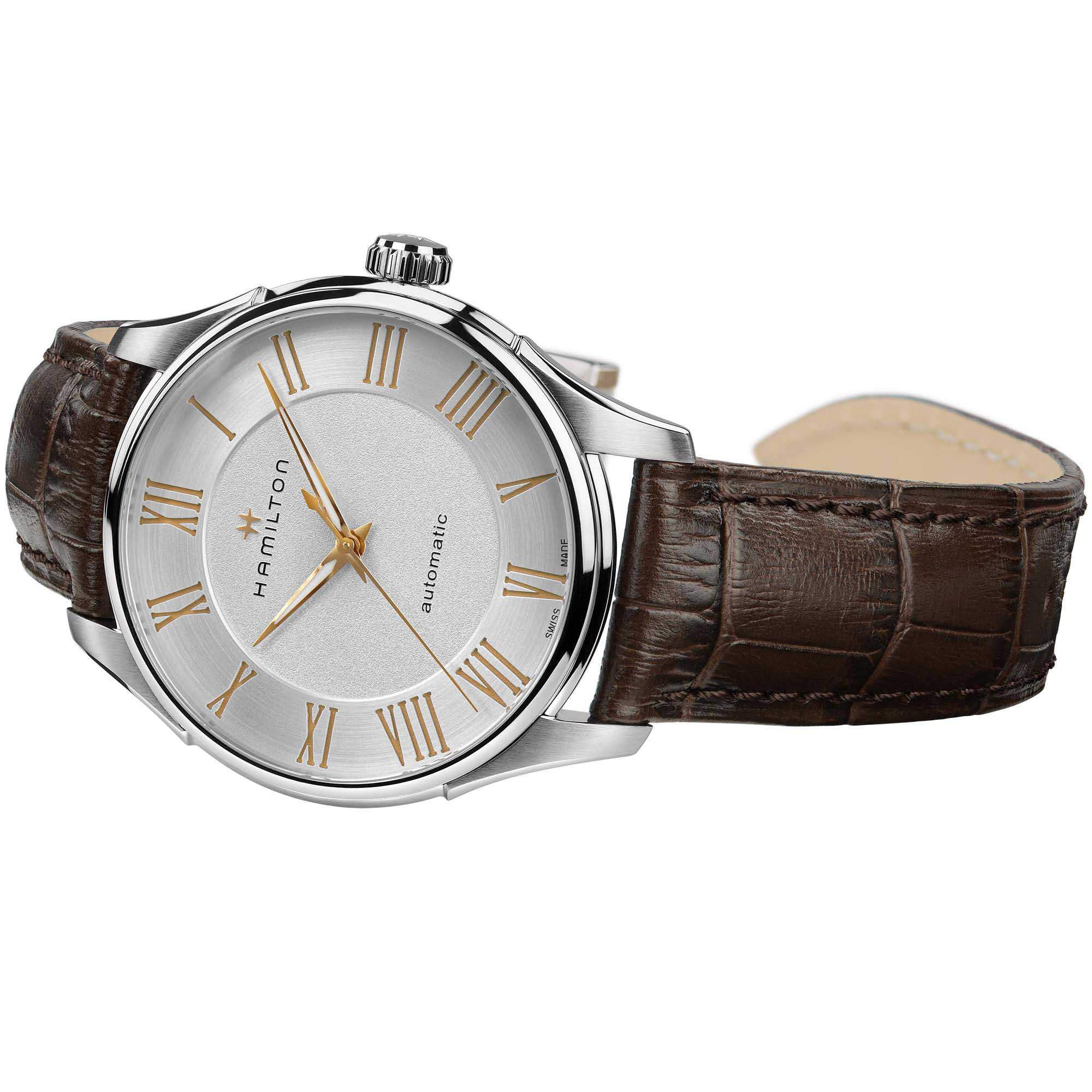 Традиции сочетаются с инновациями в 40-миллиметровом Jazzmaster Automatic. Римские цифры на циферблате придают ему особый стиль, а механизм H-10 с антимагнитной балансирной пружиной Nivachron™Nivachron™Специально разработанный инновационный сплав Nivachron™ повышает устойчивость часов к воздействию магнитных полей. гарантирует безупречную точность. С этими высококачественными часами, предлагаемыми с различными комбинациями циферблата и ремешка, возможно все. Механический механизм (автоматический калибр) с высокой точностью. Сапфировое стеклоСапфировое стеклоПрочный и надёжный материал из кристалла сапфира синтетического происхождения, характеризующийся особой твёрдостью и устойчивостью к царапинам и повреждениям. устойчивое к появлению царапин, обладающее высокой прозрачностью. Люминесцентное покрытиеЛюминесцентное покрытиеПозволяет считывать показания времени в темноте. Производители наносят на стрелки, часовые индексы, безель или поверхность циферблата светонакопительный состав, дающий холодное свечение. на стрелках. Класс водозащиты: 50 метров, позволит защитить корпус от случайных брызг или капель дождя. Корпус часов изготовлен из нержавеющей стали. Кожаный ремешок с классической застежкой.