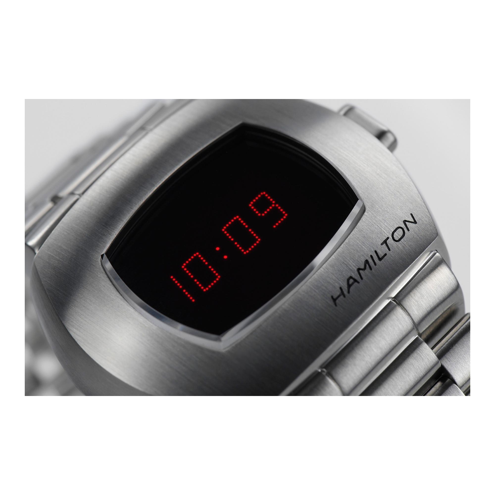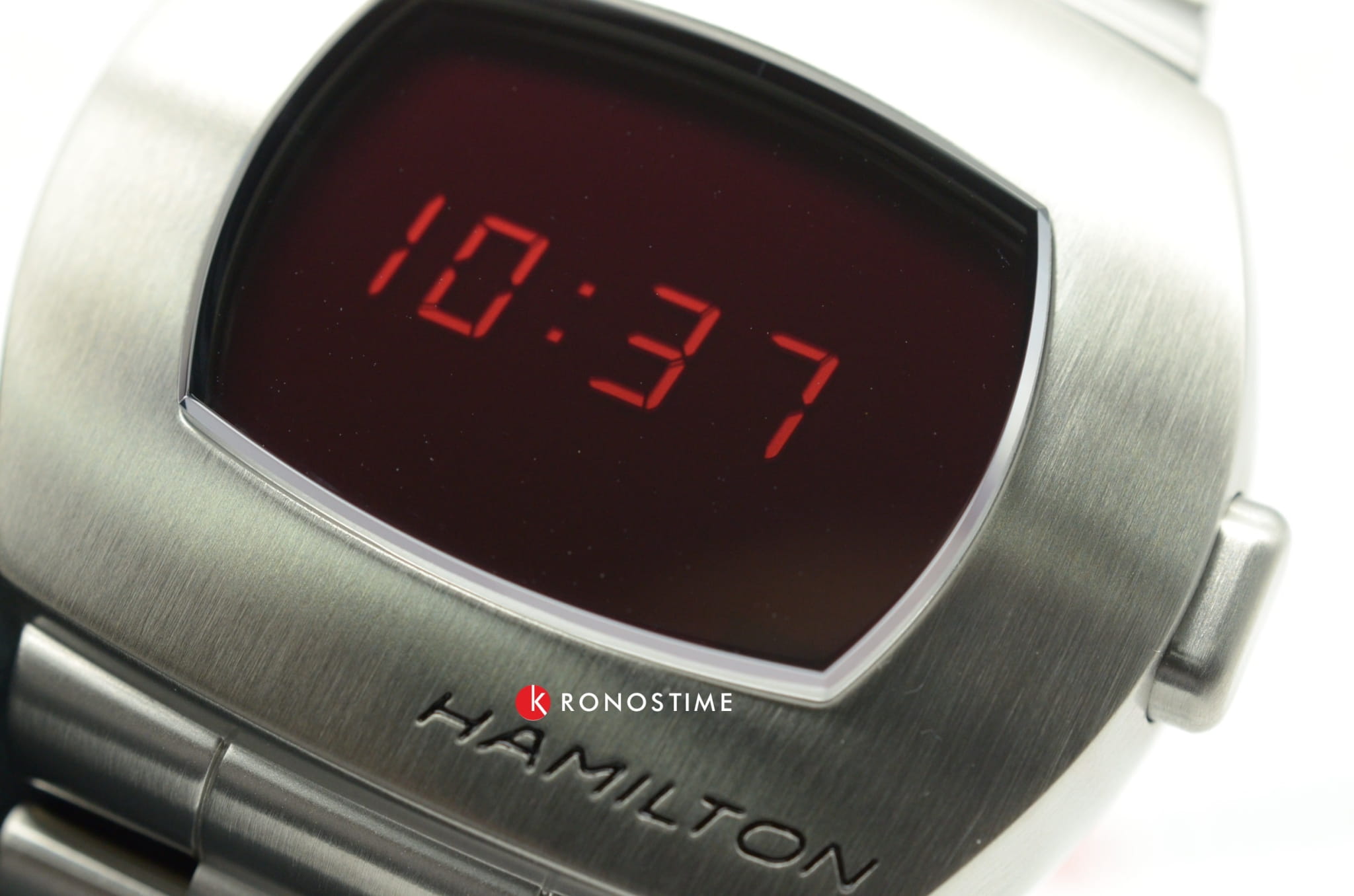 Мужские швейцарские часы из лимитированной серии в количестве 1970 штук Hamilton American Classic PSR Digital Quartz H52414130, кварцевый механизм с высокой точностью. Сапфировое стеклоСапфировое стеклоПрочный и надёжный материал из кристалла сапфира синтетического происхождения, характеризующийся особой твёрдостью и устойчивостью к царапинам и повреждениям. устойчивое к появлению царапин, обладающее высокой прозрачностью. Класс водозащиты: 100 метров, позволит плавать, нырять и заниматься другими водными видами спорта. Корпус часов изготовлен из стали. Стальной браслет на застёжке-бабочке с кнопкамиЗастёжка "бабочка"Такой вид застёжки дополняется предохранителями, помогающими избежать случайного раскрытия браслета. Обладают изящным исполнением. .