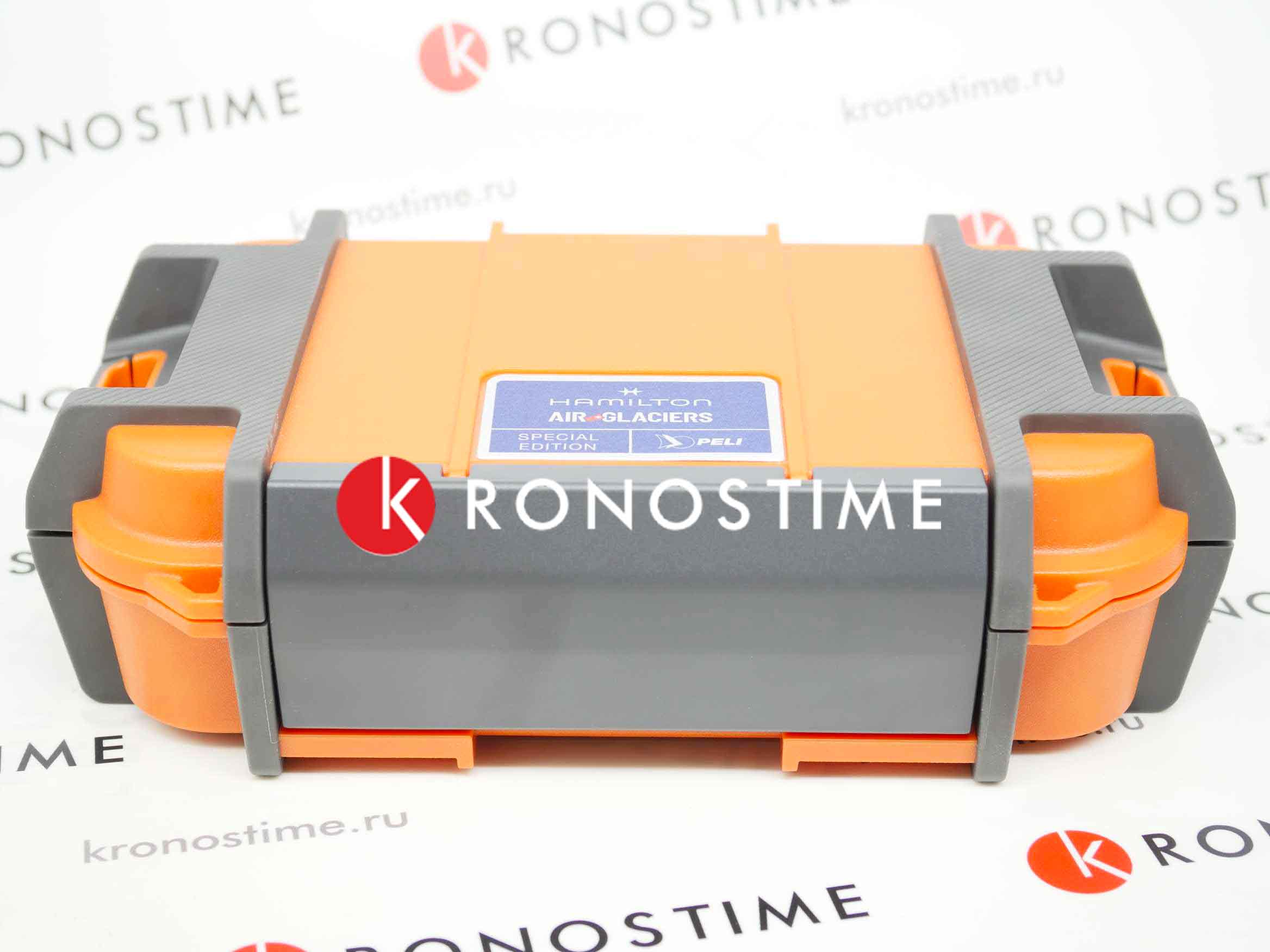 Часы специальной серии Khaki Aviation Pilot посвящены сотрудничеству со швейцарской спасательной вертолетной службой Air-Glaciers. Модель в гипоаллергенном легком корпусе из титана диаметром 42 мм, дополненная синим циферблатом, соединяет долговечность и комфорт. Готовые к любым испытаниям часы сочетают в себе культовый автоматический механизм H-30, 80-часовой запас хода и ремешок с кожаной подкладкой, внешней частью из нейлона и застежкой Velcro, обеспечивающий возможность персонализации. Изделие поставляется в специальной упаковке Pelicase с запасным сменным ремешком из коричневой замши.