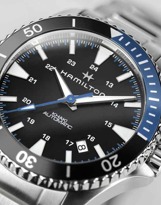 Мужские наручные часы Hamilton Khaki Navy Scuba Auto H82315131 сочетают в себе классический дизайн и надежность современных технологий. Модель обладает круглым корпусом диаметром 40 мм, изготовленным из нержавеющей стали 316L, что обеспечивает высокую устойчивость к внешним воздействиям. Корпус оснащен сапфировым стекломСапфировое стеклоПрочный и надёжный материал из кристалла сапфира синтетического происхождения, характеризующийся особой твёрдостью и устойчивостью к царапинам и повреждениям., защищающим циферблат от царапин и обеспечивающим антибликовый эффект. Часы работают на автоматическом калибре H-10 с запасом хода до 80 часов, что гарантирует точное время без необходимости подзаводки. Циферблат украшен индексами и стрелками с люминесцентным покрытиемЛюминесцентное покрытиеПозволяет считывать показания времени в темноте. Производители наносят на стрелки, часовые индексы, безель или поверхность циферблата светонакопительный состав, дающий холодное свечение., обеспечивающим видимость в темноте. Водонепроницаемость часов достигает 10 атмосфер (100 метров), что позволяет использовать их во время плавания и других водных видов спорта. Браслет выполнен из нержавеющей стали с раскладной застежкойРаскладной замокДанный вариант застежки используется только на часах с металлическим браслетом. Отличительная особенность такого крепления в том, что длина браслета становится универсальной и вы можете самостоятельно отрегулировать нужный вам размер – застежка просто двигается по браслету часов., гарантирующей комфортное ношение и безопасность