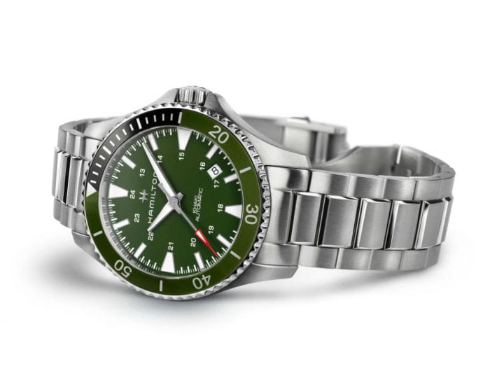 Мужские механические швейцарские часы Hamilton Khaki Navy Scuba Auto H82375161, автоматический механизм с высокой точностью. Сапфировое стеклоСапфировое стеклоПрочный и надёжный материал из кристалла сапфира синтетического происхождения, характеризующийся особой твёрдостью и устойчивостью к царапинам и повреждениям. устойчивое к появлению царапин, обладающее высокой прозрачностью. Класс водозащиты: 100 метров, позволит плавать, нырять и заниматься другими водными видами спорта. Корпус часов изготовлен из стали. Стрелки и метки с люминесцентным покрытиемЛюминесцентное покрытиеПозволяет считывать показания времени в темноте. Производители наносят на стрелки, часовые индексы, безель или поверхность циферблата светонакопительный состав, дающий холодное свечение.. Стальной браслет на раскладной застёжкеРаскладная застёжкаТакой тип застёжки используется только на браслетах из металла. Она никогда не раскрывается полностью, происходит разделение на 2 и более частей. Раскладывающая застёжка снизит вероятность потери часов к минимуму..