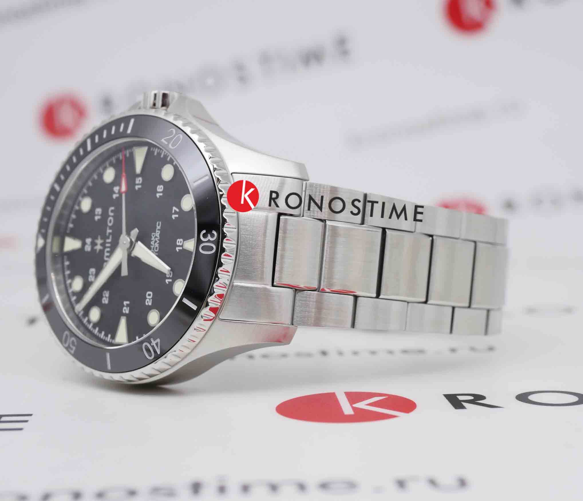 Мужские швейцарские механические часы Hamilton Khaki Navy Scuba Automatic H82515130, автоматический механизм с высокой точностью. Сапфировое стеклоСапфировое стеклоПрочный и надёжный материал из кристалла сапфира синтетического происхождения, характеризующийся особой твёрдостью и устойчивостью к царапинам и повреждениям. устойчивое к появлению царапин, обладающее высокой прозрачностью. Класс водозащиты: 300 метров, позволит плавать, нырять и заниматься другими водными видами спорта. Корпус часов изготовлен из стали. Стрелки и метки с люминесцентным покрытиемЛюминесцентное покрытиеПозволяет считывать показания времени в темноте. Производители наносят на стрелки, часовые индексы, безель или поверхность циферблата светонакопительный состав, дающий холодное свечение.. Стальной браслет на раскладной застёжкеРаскладная застёжкаТакой тип застёжки используется только на браслетах из металла. Она никогда не раскрывается полностью, происходит разделение на 2 и более частей. Раскладывающая застёжка снизит вероятность потери часов к минимуму..