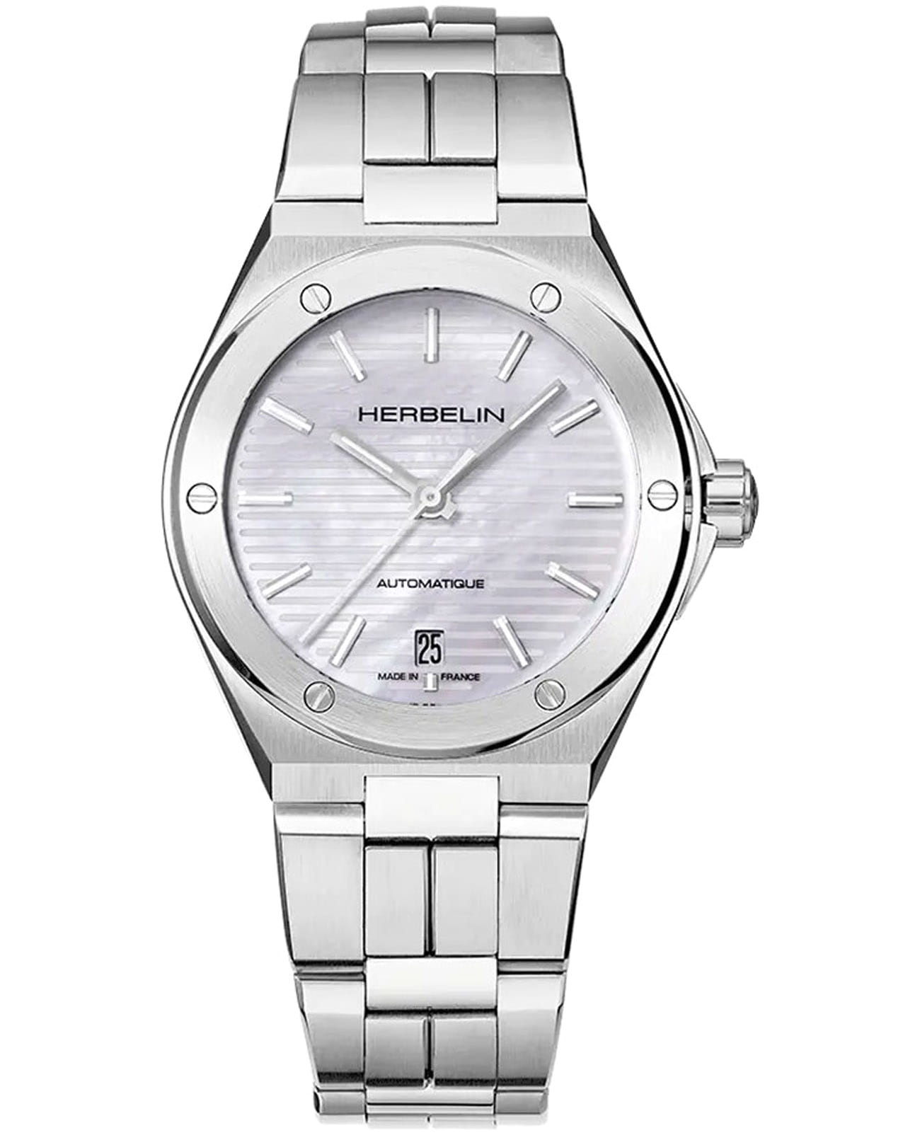 Женские механические часы с автоподзаводом Herbelin Cap Camarat 1545B19 – отражающий идеальное сочетание современного дизайна, надёжности и функциональности. Элегантный облик станет превосходным завершением образа, наделив его индивидуальным характером. Корпус из нержавеющей стали серебристого цвета, диаметром 37 мм, идеально сбалансирован и элегантен. Сапфировое стеклоСапфировое стеклоПрочный и надёжный материал из кристалла сапфира синтетического происхождения, характеризующийся особой твёрдостью и устойчивостью к царапинам и повреждениям. защищает циферблат от царапин и устойчивое к механическим повреждениям. БезельБезельВнешний ободок, закрепляющий стекло. В спортивных часах так называется поворотное кольцо с делениями на циферблате, выполняет роль таймера – замеряет отрезки времени на шкале. Неподвижный безель – элемент декора. Однонаправленно вращающийся безель на дайверских часах позволяет фиксировать моменты погружения и выныривания на поверхность. украшен винтами, заводная головка с защитой. Окошко даты находится в положении 6 часов. Стрелки и метки с люминесцентным покрытиемЛюминесцентное покрытиеПозволяет считывать показания времени в темноте. Производители наносят на стрелки, часовые индексы, безель или поверхность циферблата светонакопительный состав, дающий холодное свечение.. Стальной браслет на застёжке-бабочке с кнопкамиЗастёжка "бабочка"Такой вид застёжки дополняется предохранителями, помогающими избежать случайного раскрытия браслета. Обладают изящным исполнением. обеспечивает комфортное ношение. Водозащита 100 метров позволит плавать, нырять и заниматься другими водными видами спорта. Эта модель – отличный выбор для тех, кто ищет сочетание стиля, качества и функциональности. Часы станут не только полезным аксессуаром, но и выразительным элементом вашего имиджа.