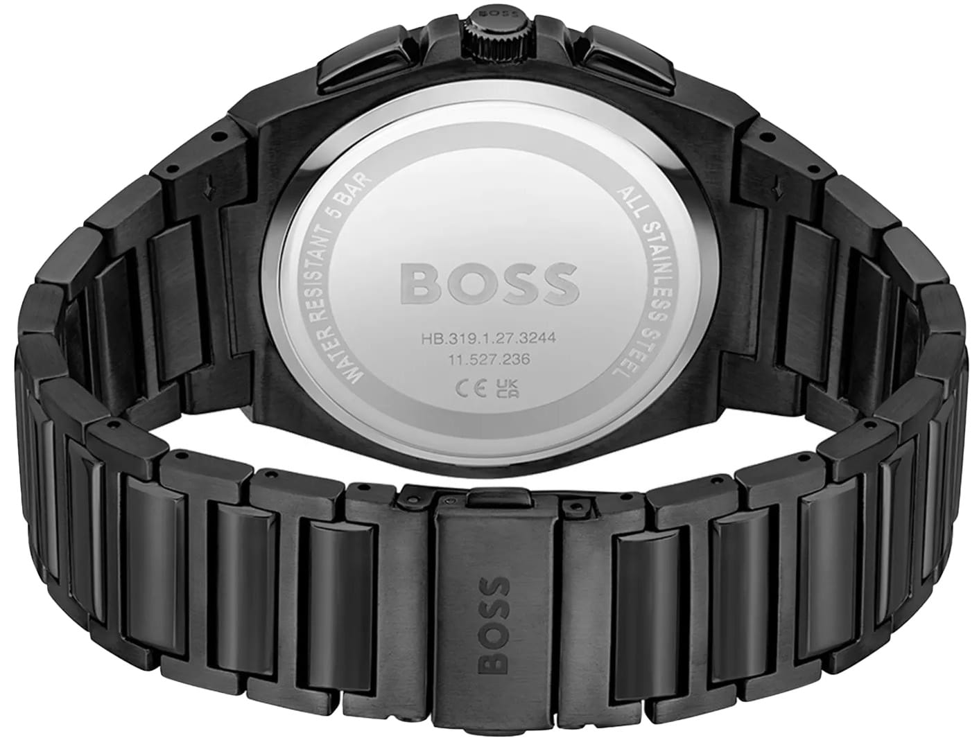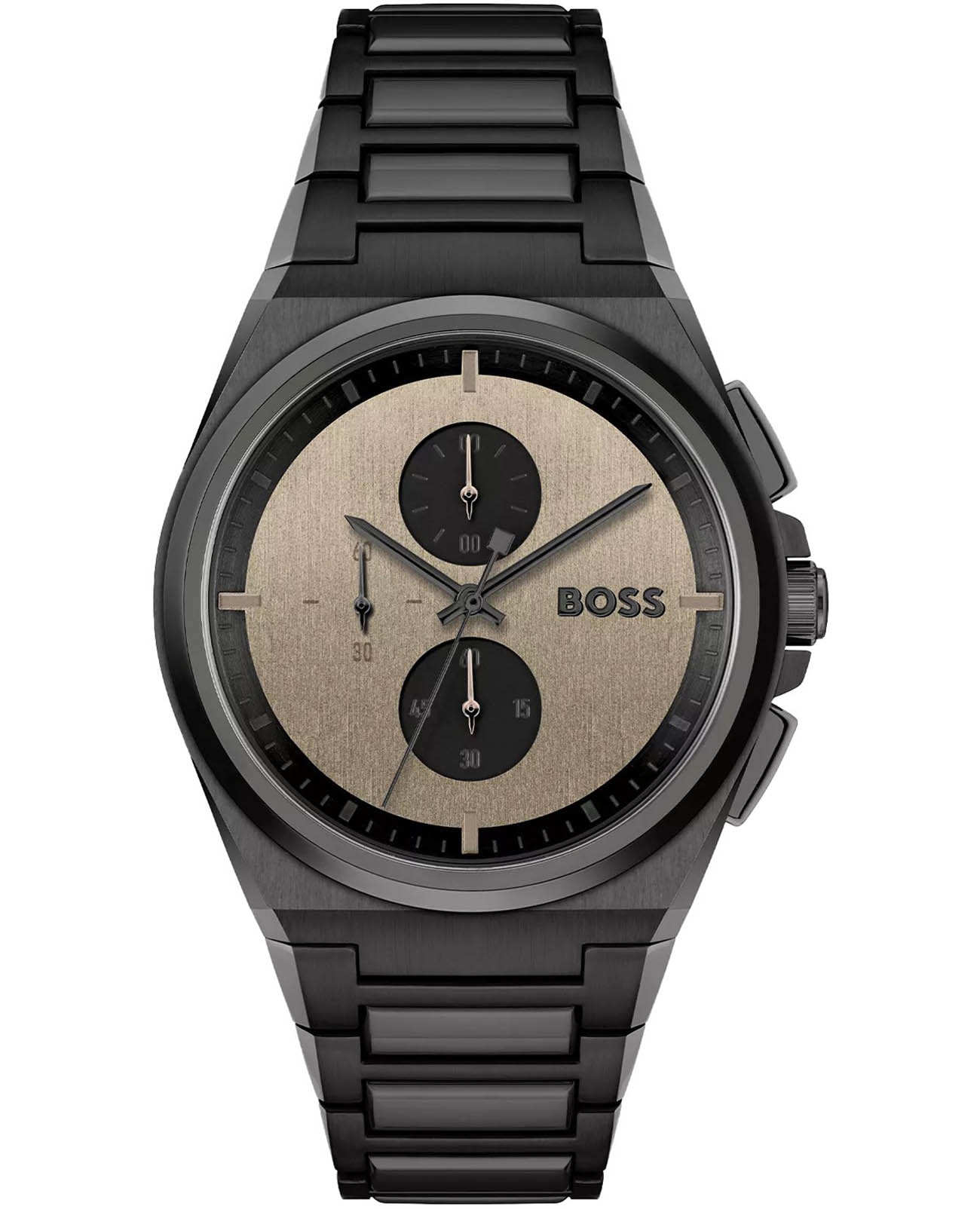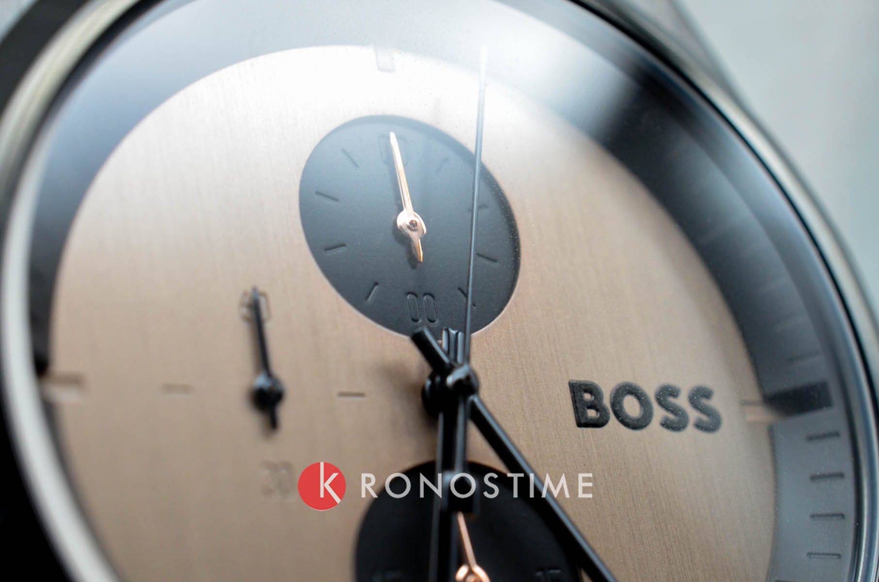 Мужские часы Hugo Boss Steer HB1514043 представлены в круглом 45,8-мм корпусе из нержавеющей стали с IP-покрытиемIP-покрытиеМетод ионного напыления. Демонстрирует повышенную устойчивость к истиранию, окислению и химическим веществам. Под воздействием высокого давления и температуры около 1500°C молекулы металла надёжно соединяются с частицами корпуса часов.. Оснащены кварцевым механизмом с функциями хронографаХронографФункция позволяет измерять отрезки времени с особой точностью: часы, минуты, секунды. Верным признаком хронографа является наличие на циферблате 3 дополнительных окошек-счётчиков., секундомеромСекундомерСекундоме́р — прибор, способный измерять интервалы времени с точностью до долей секунды.. Бежевый циферблат защищен устойчивым к царапинам минеральным стекломМинеральное стеклоМинеральное стекло представляет собой искусственно выращенный минерал кварца. Такое стекло отличается особой устойчивостью к повреждениям и царапинам. Уступает по некоторым качествам сапфировому стеклу.. Браслет из нержавеющей стали с IP-покрытиемIP-покрытиеМетод ионного напыления. Демонстрирует повышенную устойчивость к истиранию, окислению и химическим веществам. Под воздействием высокого давления и температуры около 1500°C молекулы металла надёжно соединяются с частицами корпуса часов. дополнен раскладной застёжкойРаскладная застёжкаТакой тип застёжки используется только на браслетах из металла. Она никогда не раскрывается полностью, происходит разделение на 2 и более частей. Раскладывающая застёжка снизит вероятность потери часов к минимуму.. Водонепроницаемость 50 метров (5 ATM) позволяет использовать часы для плавания.