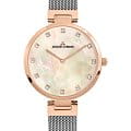Часы Jacques Lemans 1-2001M из коллекции Milano — это изысканная женская модель, сочетающая элегантный дизайн и высокое качество исполнения. Корпус диаметром 36 мм выполнен из нержавеющей стали с PVD-покрытиемPVDУльтратонкое покрытие наносится в технике вакуумного напыления, сочетает в себе нитрид титана особой прочности со слоем золота или оксида хрома. Несёт в себе декоративную или защитную функцию. розового золота. Перламутровый циферблат украшен кристаллами Swarovski в качестве часовых меток и защищён минеральным стекломМинеральное стеклоМинеральное стекло представляет собой искусственно выращенный минерал кварца. Такое стекло отличается особой устойчивостью к повреждениям и царапинам. Уступает по некоторым качествам сапфировому стеклу. Crystex, устойчивым к царапинам.
