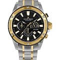 Мужские часы Jacques Lemans Liverpool 1-2141i с минеральным стекломМинеральное стеклоМинеральное стекло представляет собой искусственно выращенный минерал кварца. Такое стекло отличается особой устойчивостью к повреждениям и царапинам. Уступает по некоторым качествам сапфировому стеклу., кварцевый механизм с высокой точностью. Часы- хронографХронографФункция позволяет измерять отрезки времени с особой точностью: часы, минуты, секунды. Верным признаком хронографа является наличие на циферблате 3 дополнительных окошек-счётчиков. с секундомеромСекундомерСекундоме́р — прибор, способный измерять интервалы времени с точностью до долей секунды. представляют собой стильный аксессуар, отражающий идеальное сочетание современного дизайна, надёжности и функциональности. БезельБезельВнешний ободок, закрепляющий стекло. В спортивных часах так называется поворотное кольцо с делениями на циферблате, выполняет роль таймера – замеряет отрезки времени на шкале. Неподвижный безель – элемент декора. Однонаправленно вращающийся безель на дайверских часах позволяет фиксировать моменты погружения и выныривания на поверхность. из нержавеющей стали с PVDPVDУльтратонкое покрытие наносится в технике вакуумного напыления, сочетает в себе нитрид титана особой прочности со слоем золота или оксида хрома. Несёт в себе декоративную или защитную функцию. покрытием и с декоративными прорезями крепится к корпусу шестью винтами. На циферблате расположены три дополнительных индикатора и окошко даты. Стрелки и метки с люминесцентным покрытиемЛюминесцентное покрытиеПозволяет считывать показания времени в темноте. Производители наносят на стрелки, часовые индексы, безель или поверхность циферблата светонакопительный состав, дающий холодное свечение.. Класс водозащиты: 200 метров, позволит плавать, нырять и заниматься другими водными видами спорта.Корпус и браслет из нержавеющей стали с PVD-покрытиемPVDУльтратонкое покрытие наносится в технике вакуумного напыления, сочетает в себе нитрид титана особой прочности со слоем золота или оксида хрома. Несёт в себе декоративную или защитную функцию. на раскладной застёжкеРаскладная застёжкаТакой тип застёжки используется только на браслетах из металла. Она никогда не раскрывается полностью, происходит разделение на 2 и более частей. Раскладывающая застёжка снизит вероятность потери часов к минимуму..