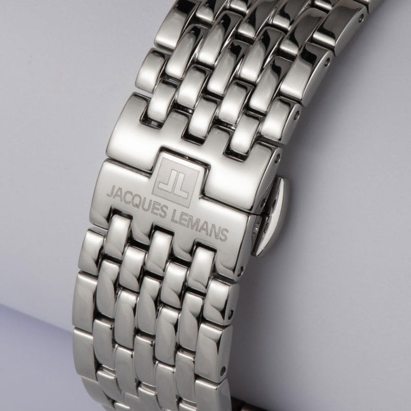 Австрийские часы Jacques Lemans Classic 1-2171H, кварцевый механизм с высокой точностью. Класс водозащиты: 50 метров, позволит защитить корпус от случайных брызг или капель дождя. Корпус часов изготовлен из нержавеющей стали. Минеральное стеклоМинеральное стеклоМинеральное стекло представляет собой искусственно выращенный минерал кварца. Такое стекло отличается особой устойчивостью к повреждениям и царапинам. Уступает по некоторым качествам сапфировому стеклу. устойчивое к появлению царапин, обладающее высокой прозрачностью. Стальной браслет на застёжке-бабочке с кнопкамиЗастёжка "бабочка"Такой вид застёжки дополняется предохранителями, помогающими избежать случайного раскрытия браслета. Обладают изящным исполнением. . Окошко даты находится в положении 3 часа.