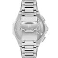 Швейцарские мужские часы-хронографХронографФункция позволяет измерять отрезки времени с особой точностью: часы, минуты, секунды. Верным признаком хронографа является наличие на циферблате 3 дополнительных окошек-счётчиков. с секундомеромСекундомерСекундоме́р — прибор, способный измерять интервалы времени с точностью до долей секунды. Jacques Philippe Esquire JPQGC041316, кварцевый механизм с высокой точностью. Сапфировое стеклоСапфировое стеклоПрочный и надёжный материал из кристалла сапфира синтетического происхождения, характеризующийся особой твёрдостью и устойчивостью к царапинам и повреждениям. устойчивое к появлению царапин, обладающее высокой прозрачностью. Корпус часов изготовлен из нержавеющей стали. На циферблате три дополнительных индикатора. Стрелки с люминесцентным покрытиемЛюминесцентное покрытиеПозволяет считывать показания времени в темноте. Производители наносят на стрелки, часовые индексы, безель или поверхность циферблата светонакопительный состав, дающий холодное свечение.. Шкала тахиметраТахиметрРазмеченная шкала, располагается на ободке или безеле часов. Тахиметр позволяет рассчитать скорость на определённом участке пути, расстояние измеряется в километрах или милях. на циферблате. Класс водозащиты: 50 метров, позволит защитить корпус от случайных брызг или капель дождя. Стальной браслет на раскладной застёжкеРаскладная застёжкаТакой тип застёжки используется только на браслетах из металла. Она никогда не раскрывается полностью, происходит разделение на 2 и более частей. Раскладывающая застёжка снизит вероятность потери часов к минимуму..