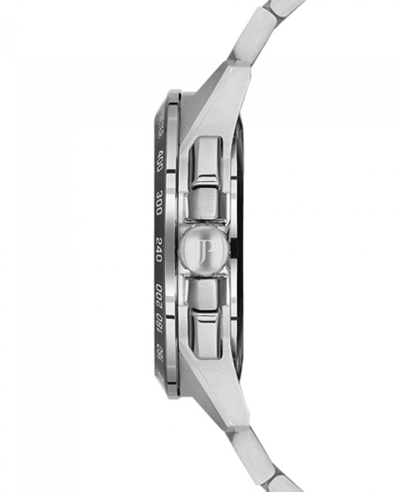 Швейцарские мужские часы-хронографХронографФункция позволяет измерять отрезки времени с особой точностью: часы, минуты, секунды. Верным признаком хронографа является наличие на циферблате 3 дополнительных окошек-счётчиков. с секундомеромСекундомерСекундоме́р — прибор, способный измерять интервалы времени с точностью до долей секунды. Jacques Philippe Magnificus JPQGC251336, кварцевый механизм с высокой точностью. Сапфировое стеклоСапфировое стеклоПрочный и надёжный материал из кристалла сапфира синтетического происхождения, характеризующийся особой твёрдостью и устойчивостью к царапинам и повреждениям. устойчивое к появлению царапин, обладающее высокой прозрачностью. Корпус часов изготовлен из нержавеющей стали. БезельБезельВнешний ободок, закрепляющий стекло. В спортивных часах так называется поворотное кольцо с делениями на циферблате, выполняет роль таймера – замеряет отрезки времени на шкале. Неподвижный безель – элемент декора. Однонаправленно вращающийся безель на дайверских часах позволяет фиксировать моменты погружения и выныривания на поверхность. с IP-покрытиемIP-покрытиеМетод ионного напыления. Демонстрирует повышенную устойчивость к истиранию, окислению и химическим веществам. Под воздействием высокого давления и температуры около 1500°C молекулы металла надёжно соединяются с частицами корпуса часов. с тахиметромТахиметрРазмеченная шкала, располагается на ободке или безеле часов. Тахиметр позволяет рассчитать скорость на определённом участке пути, расстояние измеряется в километрах или милях.. На циферблате три дополнительных индикатора. Окошко даты находится в положении 6 часов. Стрелки с люминесцентным покрытиемЛюминесцентное покрытиеПозволяет считывать показания времени в темноте. Производители наносят на стрелки, часовые индексы, безель или поверхность циферблата светонакопительный состав, дающий холодное свечение.. Класс водозащиты: 100 метров, позволит плавать, нырять и заниматься другими водными видами спорта. Стальной браслет на застёжке-бабочке.