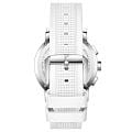 Jacques Philippe Corus JPQGC371440 — стильные швейцарские часы с функцией хронографаХронографФункция позволяет измерять отрезки времени с особой точностью: часы, минуты, секунды. Верным признаком хронографа является наличие на циферблате 3 дополнительных окошек-счётчиков. и секундомераСекундомерСекундоме́р — прибор, способный измерять интервалы времени с точностью до долей секунды., которые сочетают в себе элегантность и современный функционал. Модель оснащена точным кварцевым механизмом и надежным корпусом из нержавеющей стали 316L, что гарантирует долговечность и устойчивость к механическим воздействиям. Сапфировое стеклоСапфировое стеклоПрочный и надёжный материал из кристалла сапфира синтетического происхождения, характеризующийся особой твёрдостью и устойчивостью к царапинам и повреждениям. отличается высокой прозрачностью и устойчивостью к царапинам, сохраняя безупречный внешний вид часов даже при активном использовании. Серебристый циферблат украшен тремя дополнительными индикаторами и удобным окошком даты в положении «4 часа», а стрелки с люминесцентным покрытиемЛюминесцентное покрытиеПозволяет считывать показания времени в темноте. Производители наносят на стрелки, часовые индексы, безель или поверхность циферблата светонакопительный состав, дающий холодное свечение. обеспечивают отличную читаемость в любое время суток. Силиконовый белый ремешок обеспечивает комфортное прилегание и хорошо подходит для повседневной носки. Класс водозащиты 5 ATM (50 метров) позволяет не снимать часы во время мытья рук или прогулок под дождем.