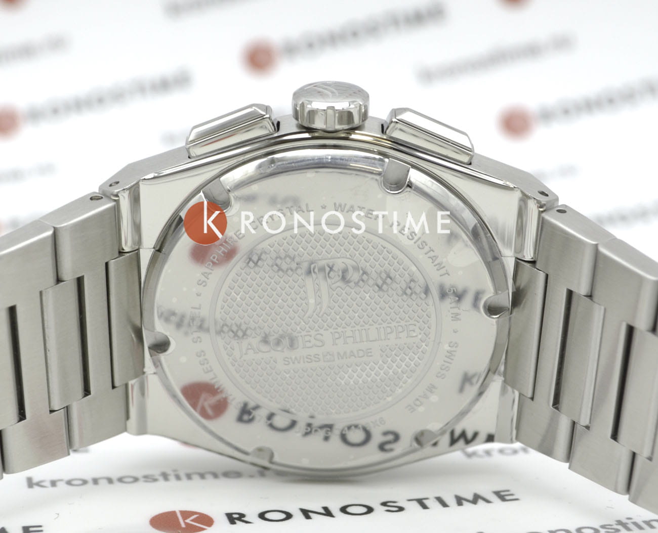 Швейцарские мужские часы-хронографХронографФункция позволяет измерять отрезки времени с особой точностью: часы, минуты, секунды. Верным признаком хронографа является наличие на циферблате 3 дополнительных окошек-счётчиков. с секундомеромСекундомерСекундоме́р — прибор, способный измерять интервалы времени с точностью до долей секунды. Jacques Philippe Aurora JPQGC4113X6, кварцевый механизм с высокой точностью. Сапфировое стеклоСапфировое стеклоПрочный и надёжный материал из кристалла сапфира синтетического происхождения, характеризующийся особой твёрдостью и устойчивостью к царапинам и повреждениям. устойчивое к появлению царапин, обладающее высокой прозрачностью. Корпус часов изготовлен из нержавеющей стали. На циферблате три дополнительных индикатора. Окошко даты находится в положении 4 часа. Стрелки с люминесцентным покрытиемЛюминесцентное покрытиеПозволяет считывать показания времени в темноте. Производители наносят на стрелки, часовые индексы, безель или поверхность циферблата светонакопительный состав, дающий холодное свечение.. Класс водозащиты: 50 метров, позволит защитить корпус от случайных брызг или капель дождя. Стальной браслет на застёжке «бабочка» с кнопкамиЗастёжка "бабочка"Такой вид застёжки дополняется предохранителями, помогающими избежать случайного раскрытия браслета. Обладают изящным исполнением. .