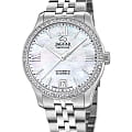 Женские швейцарские часы JAGUAR Automatic Woman J997/1, механизм — автоподзавод. В часах с автоподзаводом заводная головка практически не используется, что исключает истирание ее материала и материала корпуса. Сапфировое стеклоСапфировое стеклоПрочный и надёжный материал из кристалла сапфира синтетического происхождения, характеризующийся особой твёрдостью и устойчивостью к царапинам и повреждениям. устойчивое к мелким механическим повреждениям. Корпус и браслет часов изготовлены из нержавеющей стали. Окошко даты находится в положении 6 часов. Класс водозащиты: 50 метров, позволит защитить корпус от случайных брызг или капель дождя. Стальной браслет на застёжке-бабочке с кнопкамиЗастёжка "бабочка"Такой вид застёжки дополняется предохранителями, помогающими избежать случайного раскрытия браслета. Обладают изящным исполнением. . БезельБезельВнешний ободок, закрепляющий стекло. В спортивных часах так называется поворотное кольцо с делениями на циферблате, выполняет роль таймера – замеряет отрезки времени на шкале. Неподвижный безель – элемент декора. Однонаправленно вращающийся безель на дайверских часах позволяет фиксировать моменты погружения и выныривания на поверхность. инкрустирован цирконием.