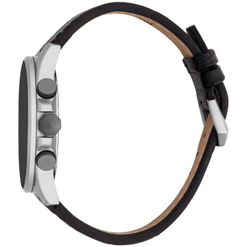 JUST CAVALLI JC1G348L0025 — стильные итальянские часы с функцией хронографаХронографФункция позволяет измерять отрезки времени с особой точностью: часы, минуты, секунды. Верным признаком хронографа является наличие на циферблате 3 дополнительных окошек-счётчиков., которые сочетают в себе элегантность и современный функционал. Круглый корпус диаметром 45 мм выполнен из нержавеющей стали, толщина корпуса составляет 11 мм, что придает модели выразительный внешний вид и надежную защиту от внешних воздействий. Часы оснащены кварцевым механизмом, также обладают функцией отображения даты, что делает их удобными для ежедневного использования. Минеральное стеклоМинеральное стеклоМинеральное стекло представляет собой искусственно выращенный минерал кварца. Такое стекло отличается особой устойчивостью к повреждениям и царапинам. Уступает по некоторым качествам сапфировому стеклу. защищает часы от царапин, а водозащита 100 метров идеально подходит для повседневного ношения. Стрелки с люминесцентным покрытиемЛюминесцентное покрытиеПозволяет считывать показания времени в темноте. Производители наносят на стрелки, часовые индексы, безель или поверхность циферблата светонакопительный состав, дающий холодное свечение.. Кожаный ремешок на стандартной застёжке обеспечивает комфортное ношение.