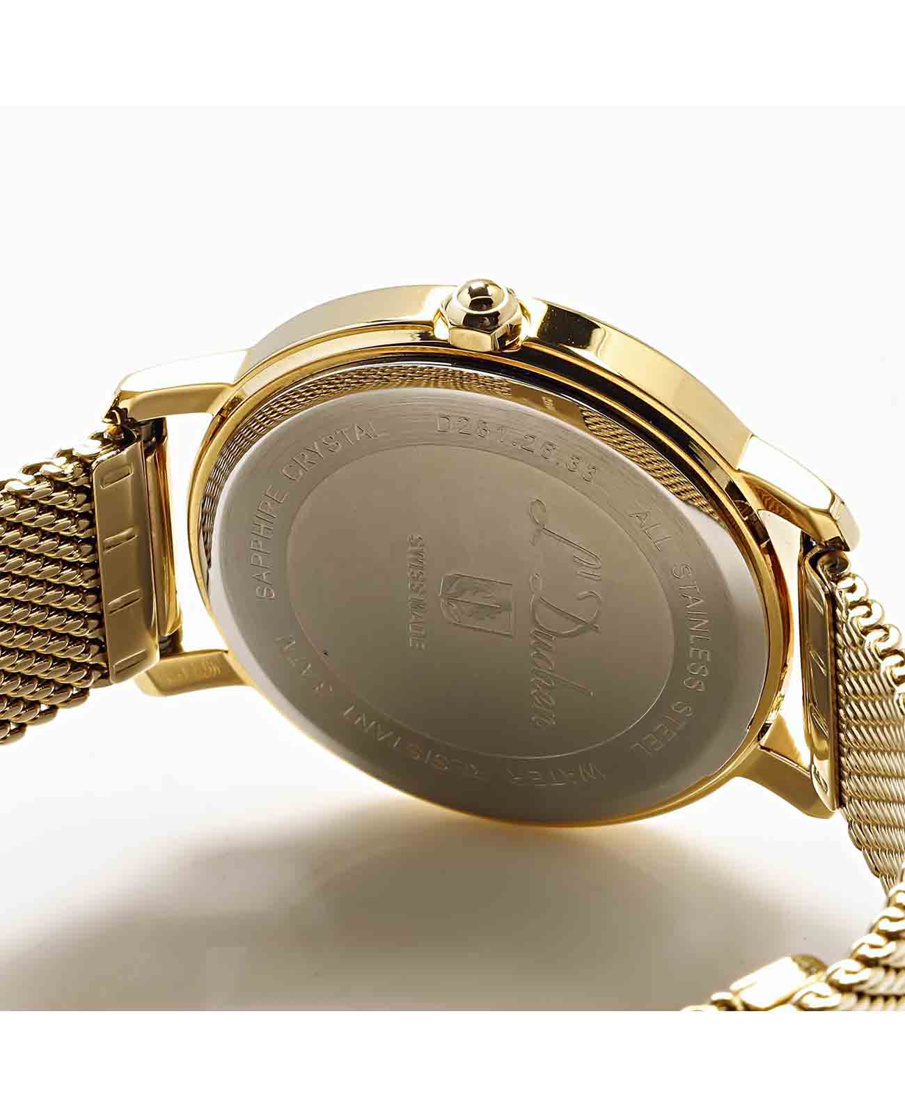Женские швейцарские L'Duchen Sonata D 281.26.33 M, кварцевый механизм с высокой точностью. Сапфировое стеклоСапфировое стеклоПрочный и надёжный материал из кристалла сапфира синтетического происхождения, характеризующийся особой твёрдостью и устойчивостью к царапинам и повреждениям. устойчивое к появлению царапин, обладающее высокой прозрачностью. Корпус часов выполнен из нержавеющей стали с PVD-покрытиемPVDУльтратонкое покрытие наносится в технике вакуумного напыления, сочетает в себе нитрид титана особой прочности со слоем золота или оксида хрома. Несёт в себе декоративную или защитную функцию.. Стрелки с люминесцентным покрытиемЛюминесцентное покрытиеПозволяет считывать показания времени в темноте. Производители наносят на стрелки, часовые индексы, безель или поверхность циферблата светонакопительный состав, дающий холодное свечение.. Класс водозащиты: 30 метров, позволит защитить корпус от случайных брызг или капель дождя. Стальной браслет миланского плетения на раскладном замкеРаскладной замокДанный вариант застежки используется только на часах с металлическим браслетом. Отличительная особенность такого крепления в том, что длина браслета становится универсальной и вы можете самостоятельно отрегулировать нужный вам размер – застежка просто двигается по браслету часов..
