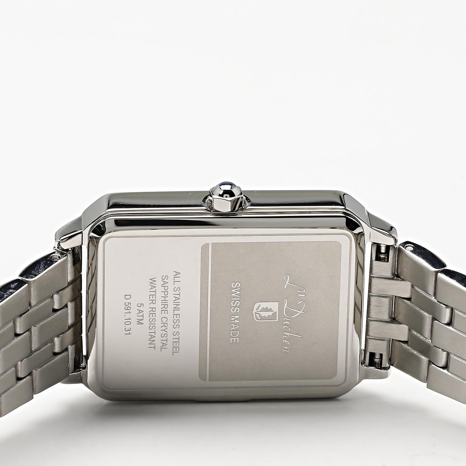 Женские швейцарские L'Duchen Pyramide D 591.10.31, кварцевый механизм с высокой точностью. Сапфировое стеклоСапфировое стеклоПрочный и надёжный материал из кристалла сапфира синтетического происхождения, характеризующийся особой твёрдостью и устойчивостью к царапинам и повреждениям. устойчивое к появлению царапин, обладающее высокой прозрачностью. Корпус часов выполнен из нержавеющей стали. Циферблат украшен фианитами. Класс водозащиты: 50 метров, позволит защитить корпус от случайных брызг или капель дождя. Стальной браслет на застёжке-бабочке с кнопкамиЗастёжка "бабочка"Такой вид застёжки дополняется предохранителями, помогающими избежать случайного раскрытия браслета. Обладают изящным исполнением. .