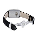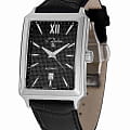 Водозащита до 5 ATM защищает от брызг и дождя. Ремешок из натуральной чёрной кожи с застёжкой-бабочкойЗастёжка "бабочка"Такой вид застёжки дополняется предохранителями, помогающими избежать случайного раскрытия браслета. Обладают изящным исполнением. и логотипом бренда обеспечивает комфортное ношение.