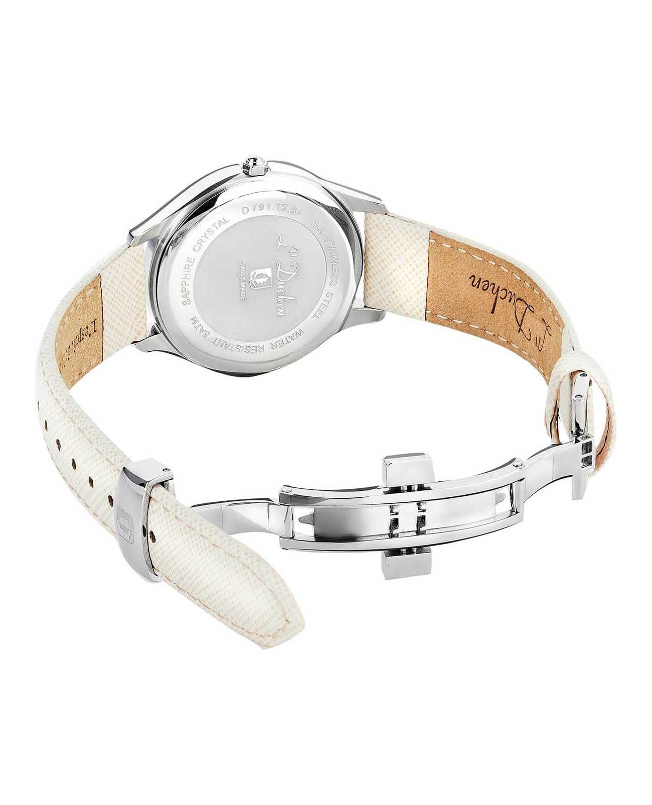 Женские швейцарские часы L'Duchen Grace D 791.15.35, кварцевый механизм с высокой точностью. Сапфировое стеклоСапфировое стеклоПрочный и надёжный материал из кристалла сапфира синтетического происхождения, характеризующийся особой твёрдостью и устойчивостью к царапинам и повреждениям. устойчивое к появлению царапин, обладающее высокой прозрачностью. Корпус часов выполнен из нержавеющей стали. Окошко даты находится в положении 6 часов. Класс водозащиты: 50 метров, позволит защитить корпус от случайных брызг или капель дождя. Кожаный ремешок на застёжке «бабочка» с кнопкамиЗастёжка "бабочка"Такой вид застёжки дополняется предохранителями, помогающими избежать случайного раскрытия браслета. Обладают изящным исполнением. .