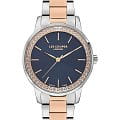 Женские часы Lee Cooper LC07229.590 — это стильное сочетание элегантности и современного дизайна. Круглый корпус диаметром 34 мм выполнен из суперметалла в серебристом и розово-золотом оттенках, а безельБезельВнешний ободок, закрепляющий стекло. В спортивных часах так называется поворотное кольцо с делениями на циферблате, выполняет роль таймера – замеряет отрезки времени на шкале. Неподвижный безель – элемент декора. Однонаправленно вращающийся безель на дайверских часах позволяет фиксировать моменты погружения и выныривания на поверхность. украшен кристаллами, придающими модели особый блеск. Синий циферблат защищен минеральным стекломМинеральное стеклоМинеральное стекло представляет собой искусственно выращенный минерал кварца. Такое стекло отличается особой устойчивостью к повреждениям и царапинам. Уступает по некоторым качествам сапфировому стеклу., обеспечивающим устойчивость к царапинам. Часы оснащены надежным кварцевым механизмом, а металлический браслет с раскладной застёжкойРаскладная застёжкаТакой тип застёжки используется только на браслетах из металла. Она никогда не раскрывается полностью, происходит разделение на 2 и более частей. Раскладывающая застёжка снизит вероятность потери часов к минимуму.  гарантирует комфортную посадку на запястье. Водозащита 30 метров защищает модель от случайных брызг и дождя. Lee Cooper LC07229.590 — отличный выбор для тех, кто ценит утонченность и качество.