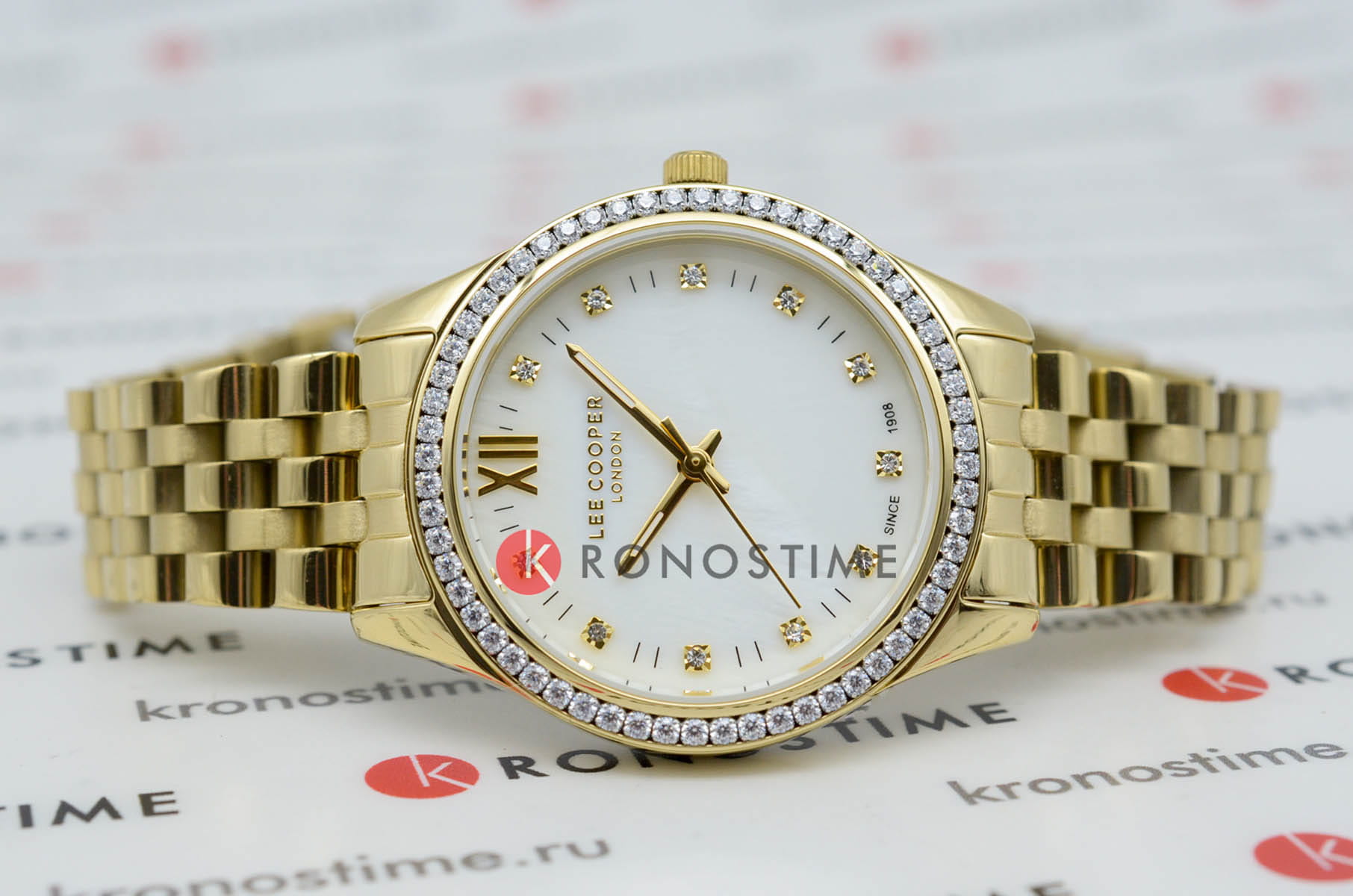 Женские наручные часы Lee Cooper LC07483.120 — это элегантная модель с утончённым дизайном. Корпус диаметром 35 мм выполнен из суперметалла с IP-покрытиемIP-покрытиеМетод ионного напыления. Демонстрирует повышенную устойчивость к истиранию, окислению и химическим веществам. Под воздействием высокого давления и температуры около 1500°C молекулы металла надёжно соединяются с частицами корпуса часов., что придаёт часам изысканный вид. Серебристый циферблат украшен изящными стрелками и вставками из циркония в виде меток, обеспечивая удобное считывание времени. Циферблат защищён минеральным стекломМинеральное стеклоМинеральное стекло представляет собой искусственно выращенный минерал кварца. Такое стекло отличается особой устойчивостью к повреждениям и царапинам. Уступает по некоторым качествам сапфировому стеклу., устойчивым к царапинам. Часы работают на кварцевом механизме, обеспечивая точность хода. Браслет из нержавеющей стали с раскладной застёжкойРаскладная застёжкаТакой тип застёжки используется только на браслетах из металла. Она никогда не раскрывается полностью, происходит разделение на 2 и более частей. Раскладывающая застёжка снизит вероятность потери часов к минимуму. гарантирует комфортное ношение и надёжную фиксацию на запястье. Водозащита 30 метров защищает часы от случайных брызг и дождя, делая их подходящими для повседневного использования. БезельБезельВнешний ободок, закрепляющий стекло. В спортивных часах так называется поворотное кольцо с делениями на циферблате, выполняет роль таймера – замеряет отрезки времени на шкале. Неподвижный безель – элемент декора. Однонаправленно вращающийся безель на дайверских часах позволяет фиксировать моменты погружения и выныривания на поверхность. инкрустирован кристаллами. Стрелки покрыты люминесцентным покрытиемЛюминесцентное покрытиеПозволяет считывать показания времени в темноте. Производители наносят на стрелки, часовые индексы, безель или поверхность циферблата светонакопительный состав, дающий холодное свечение., обеспечивая удобное считывание показаний в условиях недостаточного освещения.