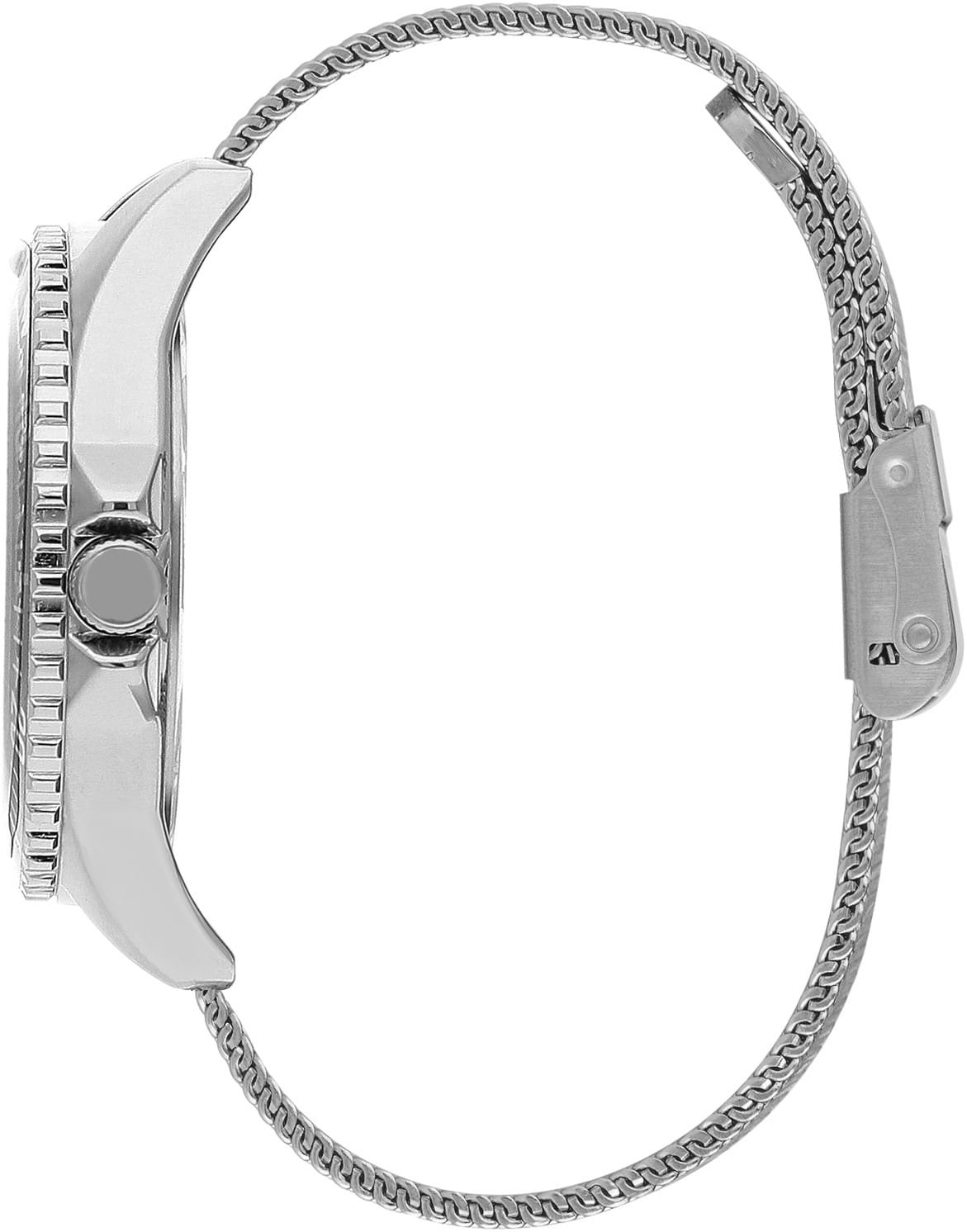 Мужские наручные часы Lee Cooper LC07542.390 — это элегантная модель, сочетающая классический стиль и функциональность. Корпус диаметром 45 мм выполнен из нержавеющей стали, обеспечивая прочность и долговечность, а безельБезельВнешний ободок, закрепляющий стекло. В спортивных часах так называется поворотное кольцо с делениями на циферблате, выполняет роль таймера – замеряет отрезки времени на шкале. Неподвижный безель – элемент декора. Однонаправленно вращающийся безель на дайверских часах позволяет фиксировать моменты погружения и выныривания на поверхность. с IP-покрытиемIP-покрытиеМетод ионного напыления. Демонстрирует повышенную устойчивость к истиранию, окислению и химическим веществам. Под воздействием высокого давления и температуры около 1500°C молекулы металла надёжно соединяются с частицами корпуса часов., придает модели изысканный вид. Синий циферблат дополнен индикаторами даты и дня недели, что делает модель удобной для ежедневного использования. Стрелки и метки покрыты люминесцентным покрытиемЛюминесцентное покрытиеПозволяет считывать показания времени в темноте. Производители наносят на стрелки, часовые индексы, безель или поверхность циферблата светонакопительный состав, дающий холодное свечение., обеспечивающим отличную читаемость в темноте. Циферблат защищён минеральным стекломМинеральное стеклоМинеральное стекло представляет собой искусственно выращенный минерал кварца. Такое стекло отличается особой устойчивостью к повреждениям и царапинам. Уступает по некоторым качествам сапфировому стеклу., устойчивым к царапинам. Часы работают на надёжном кварцевом механизме. Браслет из нержавеющей стали с раскладным замкомРаскладной замокДанный вариант застежки используется только на часах с металлическим браслетом. Отличительная особенность такого крепления в том, что длина браслета становится универсальной и вы можете самостоятельно отрегулировать нужный вам размер – застежка просто двигается по браслету часов. гарантирует удобную посадку на запястье. Водозащита 50 метров защищает механизм от влаги, позволяя не беспокоиться о случайных контактах с водой.