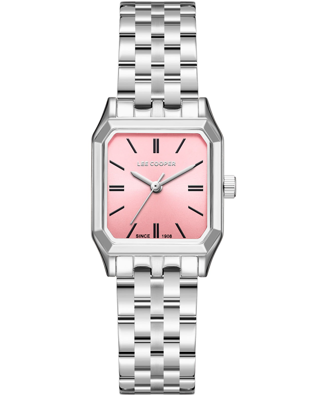Женские наручные часы Lee Cooper LC08120.380 — это изысканная модель, сочетающая элегантный дизайн и практичность. Корпус выполнен из нержавеющей стали, придавая часам уникальный и утончённый вид. Розовый циферблат с метками в виде штрихов добавляет свежий и стильный акцент, делая часы привлекательными для различных случаев. Модель оснащена надёжным кварцевым механизмом, обеспечивающим точность и долговечность. Минеральное стеклоМинеральное стеклоМинеральное стекло представляет собой искусственно выращенный минерал кварца. Такое стекло отличается особой устойчивостью к повреждениям и царапинам. Уступает по некоторым качествам сапфировому стеклу. защищает циферблат от повреждений и царапин, сохраняя его презентабельный вид. Водонепроницаемость 50 метров защищает часы от случайных брызг, что делает их подходящими для повседневных ситуаций, таких как мытьё рук или прогулки под лёгким дождём. Раскладная застёжкаРаскладная застёжкаТакой тип застёжки используется только на браслетах из металла. Она никогда не раскрывается полностью, происходит разделение на 2 и более частей. Раскладывающая застёжка снизит вероятность потери часов к минимуму. обеспечивает удобную посадку и надёжность при ношении. В целом, эти часы являются отличным выбором для тех, кто ищет аксессуар, объединяющий классический стиль, уникальное цветовое решение и функциональность. Их гармоничное сочетание серебристых оттенков с элегантным перламутровым циферблатом и качественным механизмом делает их идеальным дополнением к любому гардеробу — от официального до повседневного.
