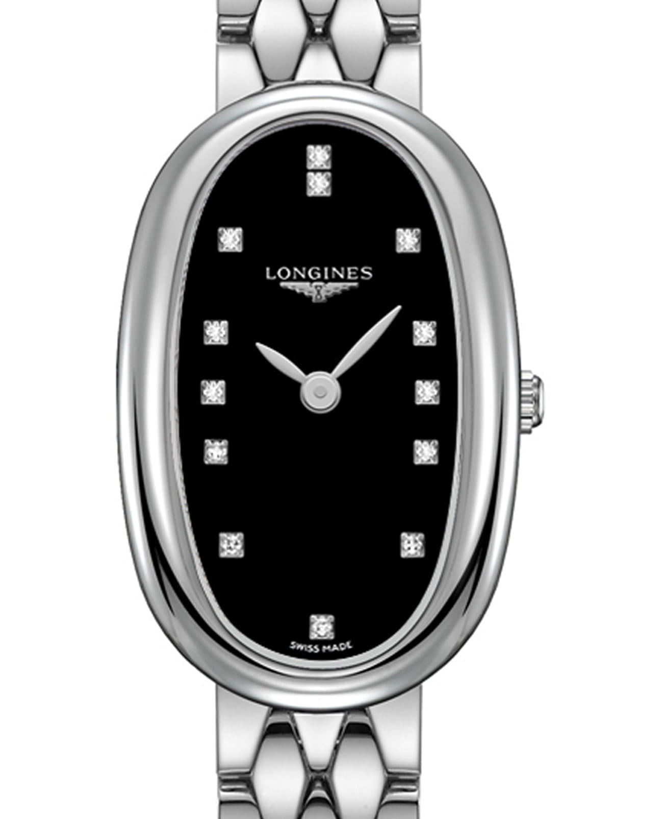 Женские швейцарские механические часы с автоподзаводом Longines Symphonette L2.305.4.57.6. Сапфировое стеклоСапфировое стеклоПрочный и надёжный материал из кристалла сапфира синтетического происхождения, характеризующийся особой твёрдостью и устойчивостью к царапинам и повреждениям. устойчивое к появлению царапин, обладающее высокой прозрачностью. Корпус часов из нержавеющей стали. Циферблат инкрустирован 13 бриллиантами 0,04 карат. Класс водозащиты: 30 метров, позволит защитить корпус от случайных брызг или капель дождя. Стальной браслет на застёжке «бабочка» с кнопкамиЗастёжка "бабочка"Такой вид застёжки дополняется предохранителями, помогающими избежать случайного раскрытия браслета. Обладают изящным исполнением. .