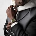 Завершает образ стальной браслет на раскладной застёжкеРаскладная застёжкаТакой тип застёжки используется только на браслетах из металла. Она никогда не раскрывается полностью, происходит разделение на 2 и более частей. Раскладывающая застёжка снизит вероятность потери часов к минимуму., который обеспечивает комфорт и удобство при ношении.