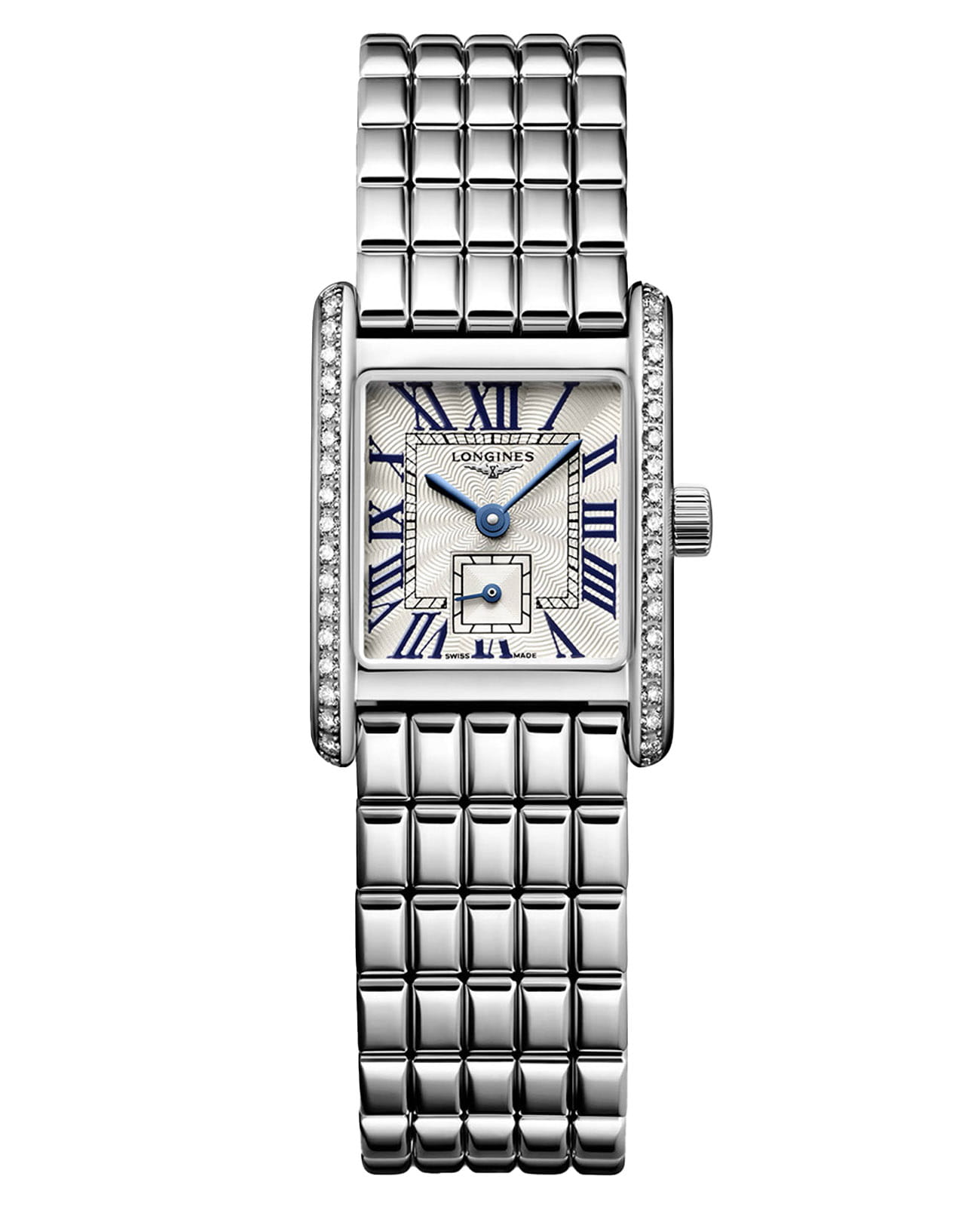 Женские швейцарские часы Longines DolceVita L5.200.0.71.6, кварцевый механизм с высокой точностью. Сапфировое стеклоСапфировое стеклоПрочный и надёжный материал из кристалла сапфира синтетического происхождения, характеризующийся особой твёрдостью и устойчивостью к царапинам и повреждениям. устойчивое к появлению царапин, обладающее высокой прозрачностью. Сияющий корпус этих часов украшен 38 бриллиантами IF-VVS Top Wesselton.Циферблат украшен узором «Flinque»,  метки в виде римских цифр. Малая секундная стрелка в положении 6 часов. Класс водозащиты: 30 метров, позволит защитить корпус от случайных брызг или капель дождя. Браслет из нержавеющей стали на застёжке «бабочка» с кнопкамиЗастёжка "бабочка"Такой вид застёжки дополняется предохранителями, помогающими избежать случайного раскрытия браслета. Обладают изящным исполнением. .