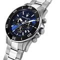 Мужские итальянские часы- хронографХронографФункция позволяет измерять отрезки времени с особой точностью: часы, минуты, секунды. Верным признаком хронографа является наличие на циферблате 3 дополнительных окошек-счётчиков. Maserati Competizione Chronograph R8873600009, кварцевый механизм с высокой точностью. Корпус часов изготовлен из стали. БезельБезельВнешний ободок, закрепляющий стекло. В спортивных часах так называется поворотное кольцо с делениями на циферблате, выполняет роль таймера – замеряет отрезки времени на шкале. Неподвижный безель – элемент декора. Однонаправленно вращающийся безель на дайверских часах позволяет фиксировать моменты погружения и выныривания на поверхность. из стали с PVD-покрытиемPVDУльтратонкое покрытие наносится в технике вакуумного напыления, сочетает в себе нитрид титана особой прочности со слоем золота или оксида хрома. Несёт в себе декоративную или защитную функцию.. Стрелки с люминесцентным покрытиемЛюминесцентное покрытиеПозволяет считывать показания времени в темноте. Производители наносят на стрелки, часовые индексы, безель или поверхность циферблата светонакопительный состав, дающий холодное свечение.. Класс водозащиты: 100 метров, позволит плавать, нырять и заниматься другими водными видами спорта. Стальной браслет на раскладной застёжкойРаскладная застёжкаТакой тип застёжки используется только на браслетах из металла. Она никогда не раскрывается полностью, происходит разделение на 2 и более частей. Раскладывающая застёжка снизит вероятность потери часов к минимуму..