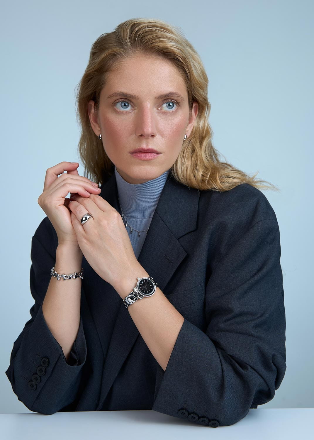 Женские кварцевые часы Mathey-Tissot City Metal D31186MABR — это стильное сочетание элегантности и современного дизайна. Изящный корпус выполнен из нержавеющей стали 316L серебристого цвета, что придаст образу женственности и романтизма. Изысканный циферблат с метками в виде римских цифр придает модели особый блеск. Циферблат защищен минеральным стекломМинеральное стеклоМинеральное стекло представляет собой искусственно выращенный минерал кварца. Такое стекло отличается особой устойчивостью к повреждениям и царапинам. Уступает по некоторым качествам сапфировому стеклу. с сапфировым покрытием, обеспечивающий устойчивость к царапинам. Окошко даты находится в положении 3 часа. Часы оснащены надежным кварцевым механизмом. Стальной браслет на раскладной застёжкеРаскладная застёжкаТакой тип застёжки используется только на браслетах из металла. Она никогда не раскрывается полностью, происходит разделение на 2 и более частей. Раскладывающая застёжка снизит вероятность потери часов к минимуму., гарантирует комфортное и безопасное ношение. Класс водозащиты: 30 метров позволит защитить корпус от случайных брызг или капель дождя. Mathey-Tissot  — отличный выбор для тех, кто ценит утонченность и качество.