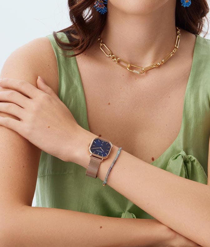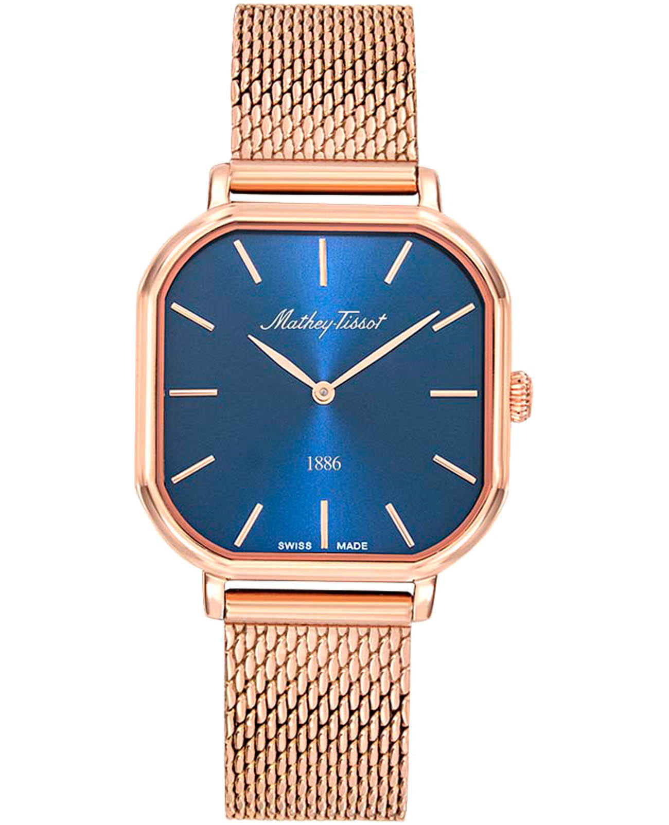 Женские кварцевые часы Mathey-Tissot Monsoon D7917PBU — это стильное сочетание элегантности и современного дизайна. Изящный корпус выполнен из нержавеющей стали с PVD-покрытиемPVDУльтратонкое покрытие наносится в технике вакуумного напыления, сочетает в себе нитрид титана особой прочности со слоем золота или оксида хрома. Несёт в себе декоративную или защитную функцию., размером 32х32 мм, что придаст образу элегантности и надежности. Изысканный циферблат с метками в виде штрихов придает модели особый блеск. Циферблат выполнен по технологии Sunray (солнечные лучи) и защищен минеральным стекломМинеральное стеклоМинеральное стекло представляет собой искусственно выращенный минерал кварца. Такое стекло отличается особой устойчивостью к повреждениям и царапинам. Уступает по некоторым качествам сапфировому стеклу. с сапфировым покрытием, обеспечивает устойчивость к царапинам. Часы оснащены надежным кварцевым механизмом. Стальной браслет с PVD-покрытиемPVDУльтратонкое покрытие наносится в технике вакуумного напыления, сочетает в себе нитрид титана особой прочности со слоем золота или оксида хрома. Несёт в себе декоративную или защитную функцию. миланского плетения на раскладном замкеРаскладная застёжкаТакой тип застёжки используется только на браслетах из металла. Она никогда не раскрывается полностью, происходит разделение на 2 и более частей. Раскладывающая застёжка снизит вероятность потери часов к минимуму., гарантирует комфортное и безопасное ношение. Класс водозащиты: 50 метров позволит защитить корпус от случайных брызг или капель дождя. Mathey-Tissot — отличный выбор для тех, кто ценит утонченность и качество.