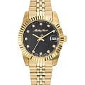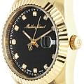 Женские кварцевые часы Mathey-Tissot Rolly D810PN — это стильное сочетание элегантности и современного дизайна. Изящный корпус выполнен из нержавеющей стали с PVD-покрытиемPVDУльтратонкое покрытие наносится в технике вакуумного напыления, сочетает в себе нитрид титана особой прочности со слоем золота или оксида хрома. Несёт в себе декоративную или защитную функцию. золотистого цвета, диаметром 30 мм, что придаст образу женственности и романтизма. Изысканный циферблат с метками в виде точек придает модели особый блеск. Циферблат защищен минеральным стекломМинеральное стеклоМинеральное стекло представляет собой искусственно выращенный минерал кварца. Такое стекло отличается особой устойчивостью к повреждениям и царапинам. Уступает по некоторым качествам сапфировому стеклу., обеспечивающий устойчивость к царапинам. Стрелки с люминесцентным покрытиемЛюминесцентное покрытиеПозволяет считывать показания времени в темноте. Производители наносят на стрелки, часовые индексы, безель или поверхность циферблата светонакопительный состав, дающий холодное свечение.. Циферблат украшен кристаллами. Окошко даты находится в положении 3 часа. Часы оснащены надежным кварцевым механизмом. Стальной браслет с PVD-покрытиемPVDУльтратонкое покрытие наносится в технике вакуумного напыления, сочетает в себе нитрид титана особой прочности со слоем золота или оксида хрома. Несёт в себе декоративную или защитную функцию. на раскладной застёжкеРаскладная застёжкаТакой тип застёжки используется только на браслетах из металла. Она никогда не раскрывается полностью, происходит разделение на 2 и более частей. Раскладывающая застёжка снизит вероятность потери часов к минимуму., гарантирует комфортное и безопасное ношение. Класс водозащиты: 50 метров позволит защитить корпус от случайных брызг или капель дождя. Mathey-Tissot  — отличный выбор для тех, кто ценит утонченность и качество.