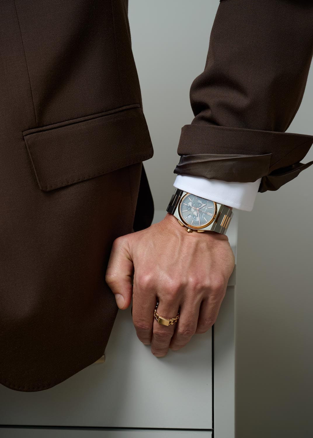 Мужские кварцевые часы-хронографХронографФункция позволяет измерять отрезки времени с особой точностью: часы, минуты, секунды. Верным признаком хронографа является наличие на циферблате 3 дополнительных окошек-счётчиков. Mathey-Tissot Zoltan H117CHRS — это стильное сочетание элегантности и современного дизайна. Изящный корпус выполнен из нержавеющей стали, диаметром 42 мм, что придаст образу элегантности и надежности. Изысканный циферблат с метками в виде штрихов придает модели особый блеск. Циферблат защищен сапфировым стекломСапфировое стеклоПрочный и надёжный материал из кристалла сапфира синтетического происхождения, характеризующийся особой твёрдостью и устойчивостью к царапинам и повреждениям., обеспечивающий устойчивость к царапинам. Неподвижный безельБезельВнешний ободок, закрепляющий стекло. В спортивных часах так называется поворотное кольцо с делениями на циферблате, выполняет роль таймера – замеряет отрезки времени на шкале. Неподвижный безель – элемент декора. Однонаправленно вращающийся безель на дайверских часах позволяет фиксировать моменты погружения и выныривания на поверхность. с PVD-покрытиемPVDУльтратонкое покрытие наносится в технике вакуумного напыления, сочетает в себе нитрид титана особой прочности со слоем золота или оксида хрома. Несёт в себе декоративную или защитную функцию. цвета розового золота. Стрелки и метки с люминесцентным покрытиемЛюминесцентное покрытиеПозволяет считывать показания времени в темноте. Производители наносят на стрелки, часовые индексы, безель или поверхность циферблата светонакопительный состав, дающий холодное свечение.. Окошко даты находится в положении 4 часа. Часы оснащены надежным кварцевым механизмом. Стальной браслет с частичным PVD-покрытиемPVDУльтратонкое покрытие наносится в технике вакуумного напыления, сочетает в себе нитрид титана особой прочности со слоем золота или оксида хрома. Несёт в себе декоративную или защитную функцию. на застёжке-бабочке с кнопкамиЗастёжка "бабочка"Такой вид застёжки дополняется предохранителями, помогающими избежать случайного раскрытия браслета. Обладают изящным исполнением. , гарантирует комфортное и безопасное ношение. Класс водозащиты: 50 метров позволит защитить корпус от случайных брызг или капель дождя. Mathey-Tissot  — отличный выбор для тех, кто ценит утонченность и качество.