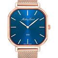 Мужские кварцевые часы Mathey-Tissot Monsoon H7917PBU — это стильное сочетание элегантности и современного дизайна. Изящный корпус выполнен из нержавеющей стали с PVD-покрытиемPVDУльтратонкое покрытие наносится в технике вакуумного напыления, сочетает в себе нитрид титана особой прочности со слоем золота или оксида хрома. Несёт в себе декоративную или защитную функцию. цвета розового золота, размером 40х40 мм, что придаст образу элегантности и надежности. Изысканный циферблат с метками в виде штрихов придает модели особый блеск. Циферблат выполнен по технологии Sunray (солнечные лучи) и защищен минеральным стекломМинеральное стеклоМинеральное стекло представляет собой искусственно выращенный минерал кварца. Такое стекло отличается особой устойчивостью к повреждениям и царапинам. Уступает по некоторым качествам сапфировому стеклу. с сапфировым покрытием, обеспечивает устойчивость к царапинам. Часы оснащены надежным кварцевым механизмом. Стальной браслет с PVD-покрытиемPVDУльтратонкое покрытие наносится в технике вакуумного напыления, сочетает в себе нитрид титана особой прочности со слоем золота или оксида хрома. Несёт в себе декоративную или защитную функцию. миланского плетения на раскладном замкеРаскладная застёжкаТакой тип застёжки используется только на браслетах из металла. Она никогда не раскрывается полностью, происходит разделение на 2 и более частей. Раскладывающая застёжка снизит вероятность потери часов к минимуму., гарантирует комфортное и безопасное ношение. Класс водозащиты: 50 метров позволит защитить корпус от случайных брызг или капель дождя. Mathey-Tissot  — отличный выбор для тех, кто ценит утонченность и качество.