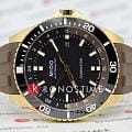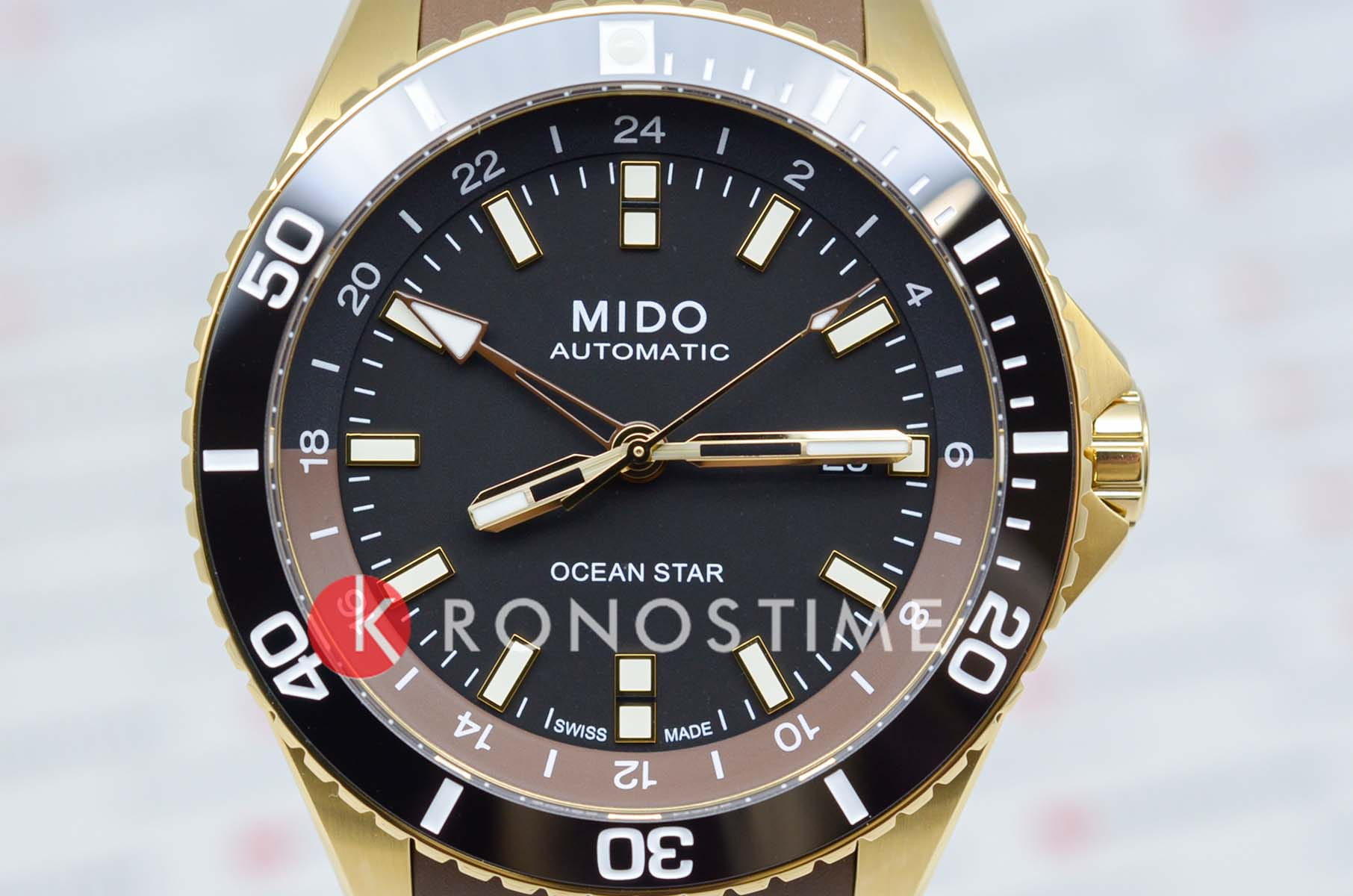 Часы MIDO Ocean Star GMT (артикул M026.629.37.291.00) сочетают элегантность и функциональность, идеально подходя для путешественников и любителей водных видов спорта. Корпус диаметром 44 мм выполнен из нержавеющей стали с керамическим безелем и водозащитой до 20 бар (200 метров). Завинчивающаяся заводная головка и накладные часовые метки, покрытые люминесцентным покрытиемЛюминесцентное покрытиеПозволяет считывать показания времени в темноте. Производители наносят на стрелки, часовые индексы, безель или поверхность циферблата светонакопительный состав, дающий холодное свечение.обеспечивают удобство и надёжность. Чёрный циферблат защищён сапфировым стекломСапфировое стеклоПрочный и надёжный материал из кристалла сапфира синтетического происхождения, характеризующийся особой твёрдостью и устойчивостью к царапинам и повреждениям.. Модель оснащена автоматическим механизмом MIDO Caliber 80, обеспечивающим запас хода до 80 часов. Функционал включает индикацию часов, минут, секунд, даты в положении «3 часа» и второго часового пояса GMTGMTОтображение времени второго часового пояса.Такая функция особенно актуальна для путешественников и бизнесменов,которые общаются с людьми из разных стран,теперь вы всегда будете знать,какой час у вашего партнёра или близкого человека.. Коричневый ремешок с раскладной застёжкойРаскладная застёжкаТакой тип застёжки используется только на браслетах из металла. Она никогда не раскрывается полностью, происходит разделение на 2 и более частей. Раскладывающая застёжка снизит вероятность потери часов к минимуму. с удлинением для дайвинга обеспечивает комфортное ношение и стильный внешний вид. На задней крышке выгравированы часовые пояса, что упрощает настройку времени при путешествиях. Эти часы идеально подходят как для повседневного ношения, так и для приключений.